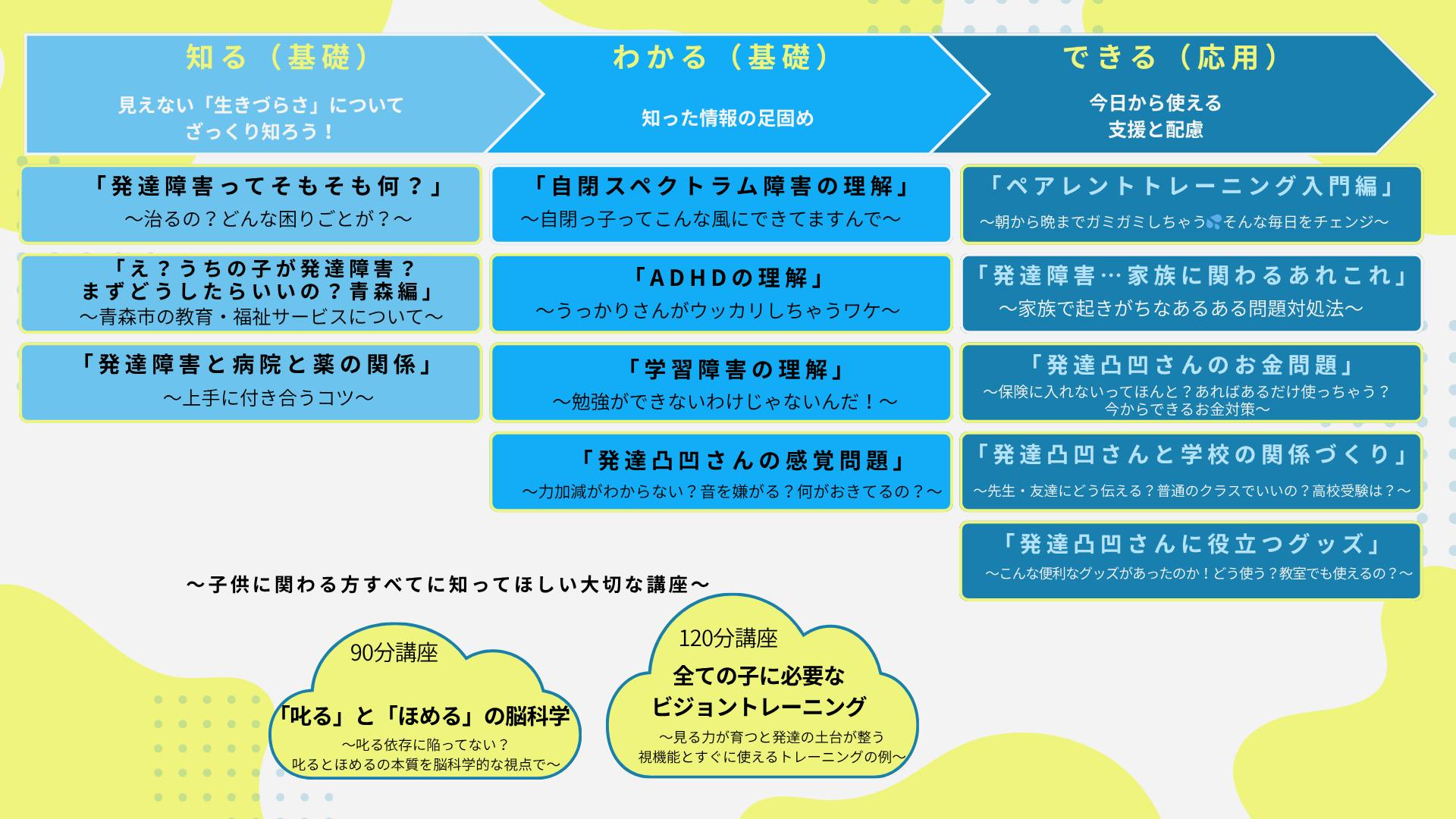(内容例)発達障害の基礎/病院と薬の付き合い方/学校との関係づくり/役立つグッズ