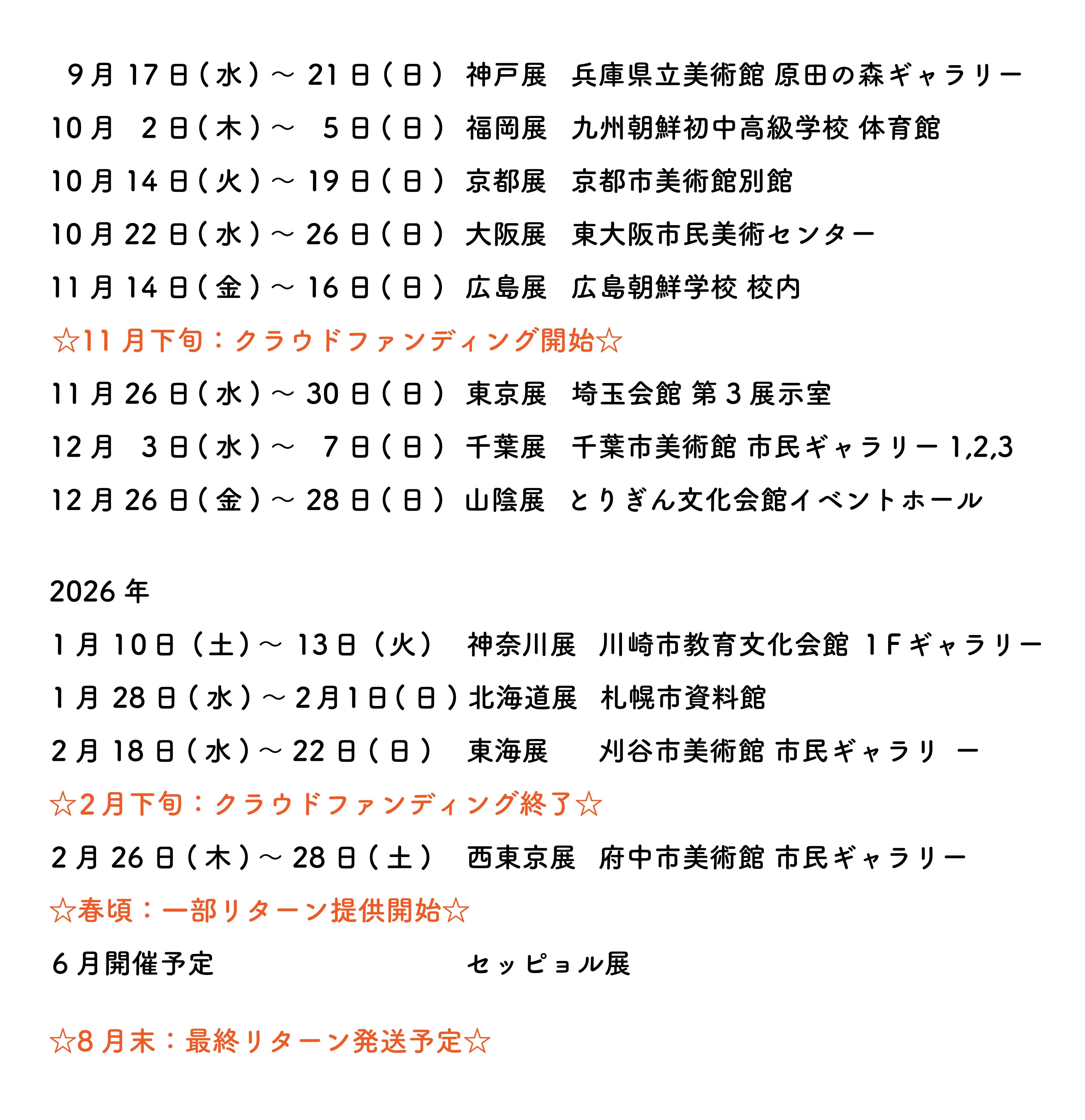 2026/04/01 12:00本プロジェクトを支援してくださっている皆さま、いつもありがとうございます。お待たせ致しました!リターンのサンクスレターと壁紙をダイレクトメッセージにてお送りしましたので、ご確認ください。(壁紙はランダム一点ではなく、20種以上の作品を選び放題となりました!)ぜひスマホ画面に設定して、日常で学美作品をお楽しみください!募集期間、暖かいメッセージやこのプロジェクトを宣伝してくださる方たちに支えられ、学生美術展の活動と画集制作を広めることができました。私たちは今、沢山の方々に応援されている喜びと大きな期待を感じています。このクラウドファンディングの成功は新たなる始まりであり、まずは皆さまの期待に応えられる画集の出版を、皆さまのお手元に届けるまで真摯に仕事をしていきます。そして、画集を観てくださること、そして今までよりもさらに学生美術展を通じて朝鮮学校の児童・生徒たちの創造力と文化を世界に発信し、芸術の輪を広げていくためにがんばっていきます。引き続き私たちの活動を見守り、応援してくださいますよう、よろしくお願いします。現在、リターンを制作し期日に向け発送すること、 また画集の編集作業も出版日に向け頑張っています。楽しみにお待ちください!⋆ ✩ ⋆ ┄ ⋆ ✩ ⋆ ┄ ⋆ ✩ ⋆ ┄ ⋆ ✩ ⋆ ┄ ⋆ ✩ ⋆ ┄ ⋆ ✩ ⋆ 【画集予約販売】を期間限定で受付中です!追加購入をご希望の方は、申し込みフォームからご注文ください。⬛︎ 画集予約販売申し込みフォーム ⬛︎https://forms.gle/k8FBFteD9v8bXcfH7(申し込み期間 2026/3/29〜/5/10 )⋆ ✩ ⋆ ┄ ⋆ ✩ ⋆ ┄ ⋆ ✩ ⋆ ┄ ⋆ ✩ ⋆ ┄ ⋆ ✩ ⋆ ┄ ⋆ ✩ ⋆ 今後もプロジェクトやリターンの進捗状況は、このプロジェクトページの「活動報告」とダイレクトメッセージにて随時お知らせしていきます。(リターンの提供は、同年8月末に最終発送することを予定しております。)⬛︎ クラウドファンディングページ ⬛︎ https://camp-fire.jp/projects/881812/view⬛︎ 画集出版 特設ページ ⬛︎ https://50th-gasyuu.jimdofree.com各SNSでは、全国の朝鮮学校の展示や美術部活動を常時紹介しています。(2026年度ラストの在日朝鮮学生美術展であるセッピョル展の詳細も、後日各SNSにてお知らせします。)是非フォローとチェックをお願い致します!⬛︎ 在日朝鮮学生美術展 GAKUBI 公式HP ⬛︎ https://www.gakubi1972.com⬛︎ Facebook ⬛︎ https://www.facebook.com/gakubi1970⬛︎ Instagram ⬛︎ https://www.instagram.com/gakubi1970 もっと見る