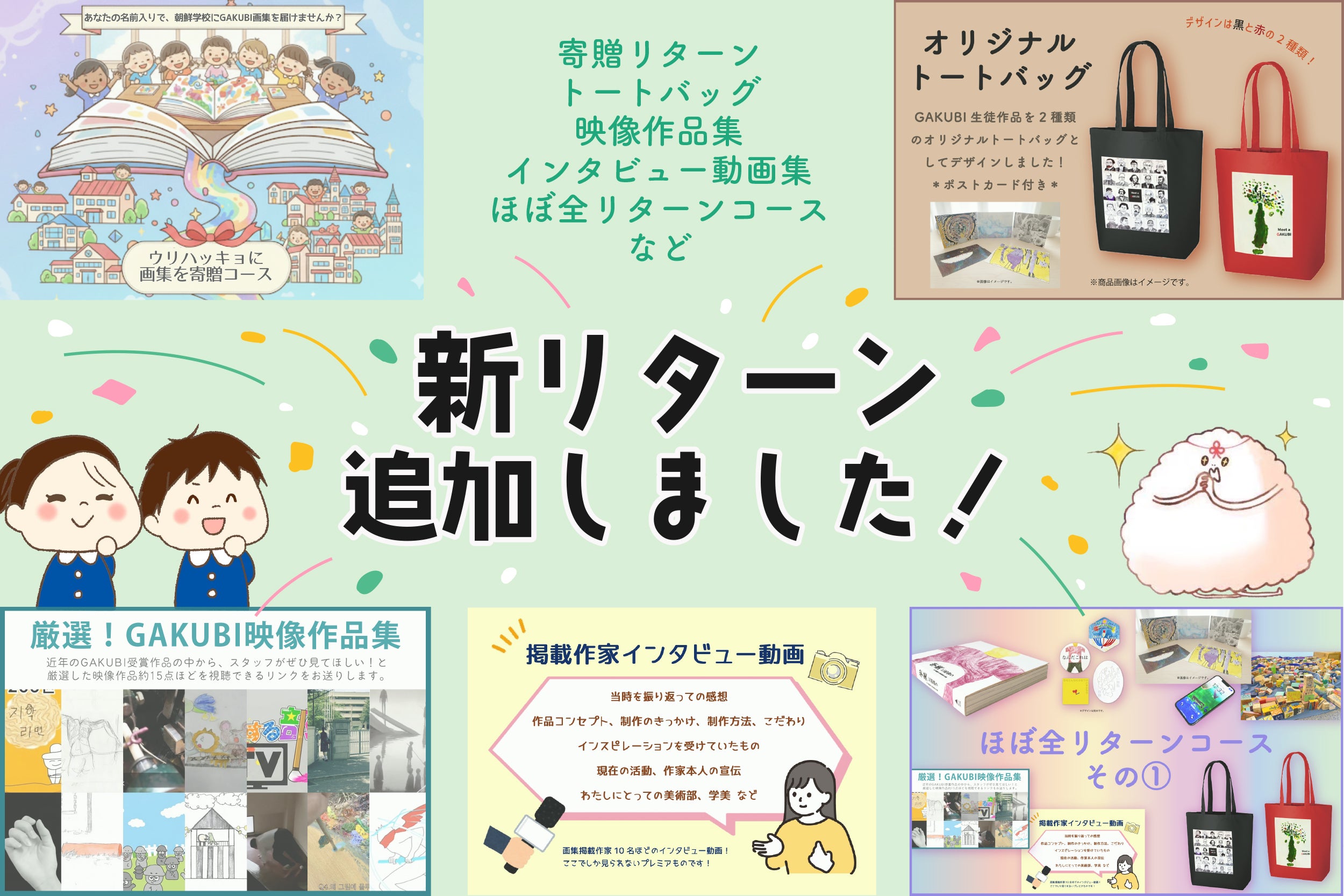 どれもただの商品ではなく、生徒たちへ還元でき、多くの方々に作品を見てもらうことを大事にして準備したリターンたちです!