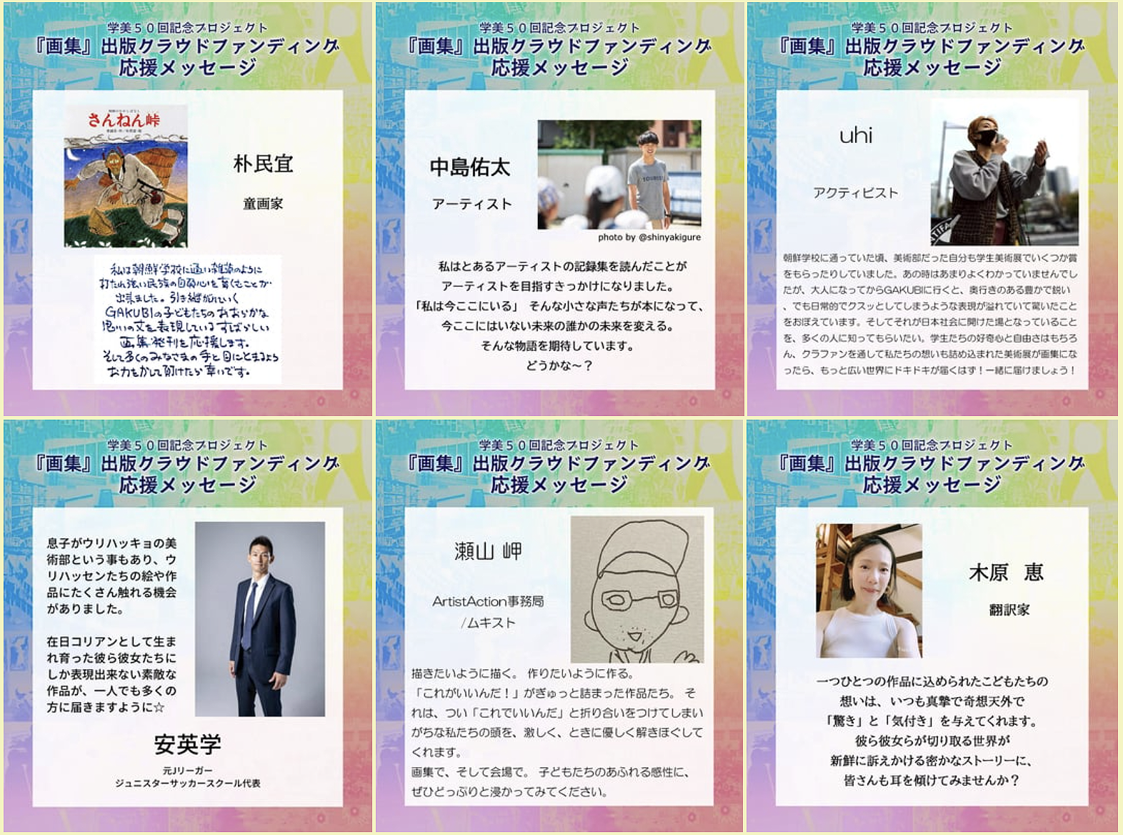 応援メッセージはこちらの 画集出版特設サイト にて全て大きくご覧になれます。