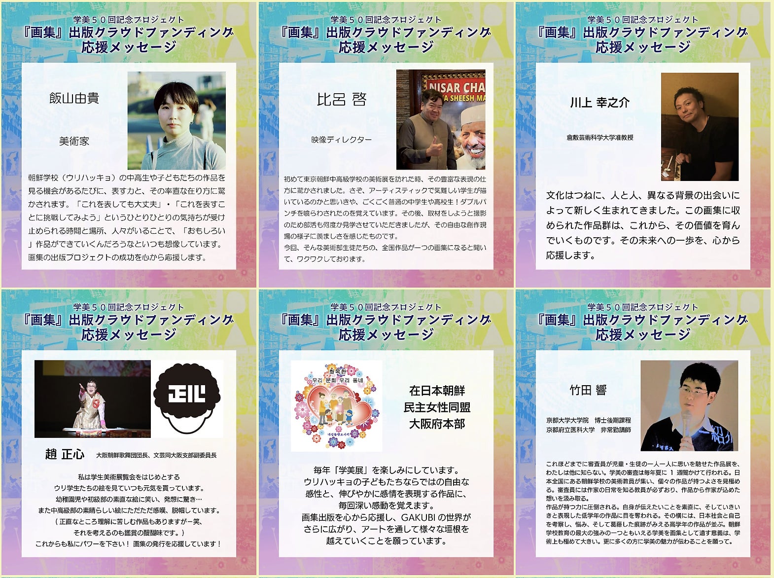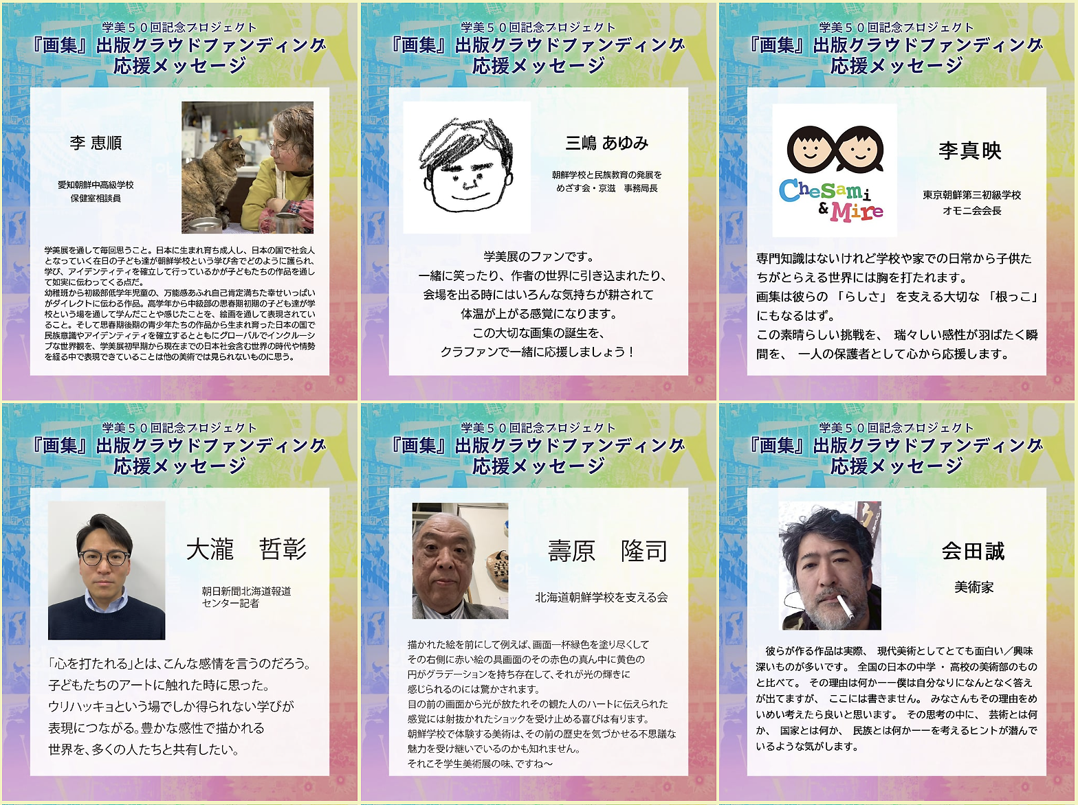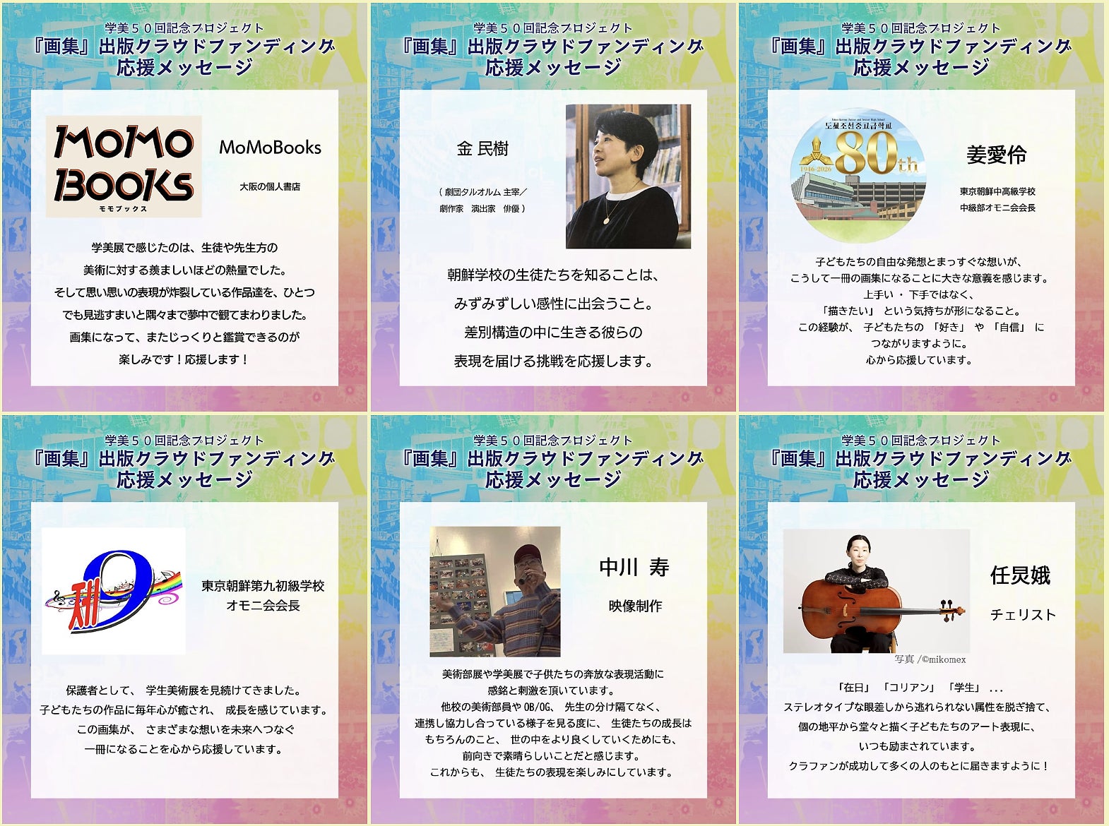 今回の「学生美術展 第50回記念画集」を出版することで、朝鮮学校の児童・生徒たちの創造力と文化を世界に発信し、広く知っていただくこと、それが私たちの最大の目標です。