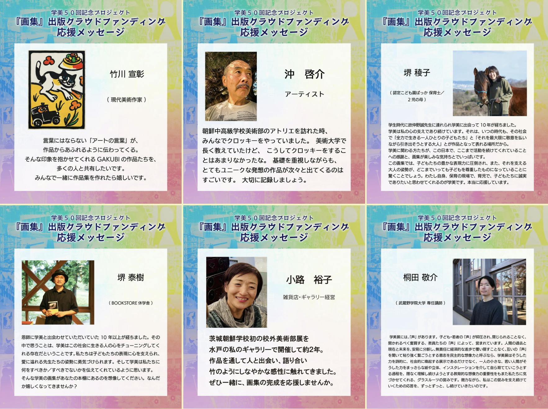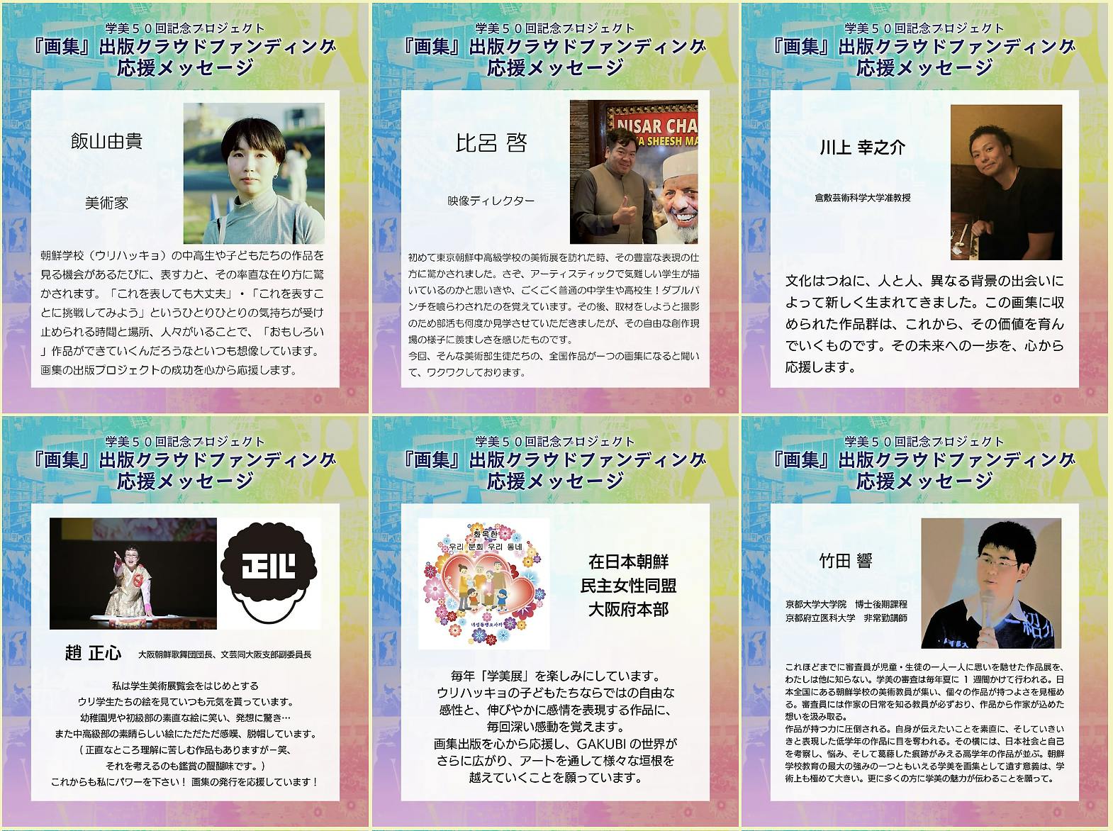 2026/02/23 17:05この度、クラウドファンディング「【子どもの創造力と出会う】GAKUBI(在日朝鮮学生美術展)の画集を出版したい!」は、お陰様で大成功で終了致しました!沢山の温かいご支援、誠にありがとうございました!【 達成結果のご報告 】 ★ 支援者 448人 ★ ★ 支援額 267万8083円 ★ ★ 達成度 133% ★皆様の多大なるご支援により、目標額200万円をゆうに超え、ネクストゴール250万円も突破する事ができました!心よりお礼申し上げます!このクラウドファンディングの成功は、終わりではなく始まりです。これから朝鮮学校の児童・生徒たちの創造力と文化を世界に発信し、芸術の輪を広げていく第一歩となります。 引き続きGAKUBIの応援をよろしくお願いします!今後のプロジェクトやリターンの進捗状況は、こちらのプロジェクトページの「活動報告」とダイレクトメッセージにて随時お知らせしていきます。しばらくお待ちください。(リターンの提供は、2026年春以降に開始し、同年8月末に最終発送することを予定しております。)また、在日朝鮮学生美術展は全国巡回中、全国の美術部部展も開催中です!お近くにお越しの際は、是非子どもたちの作品に会いにいらしてください。最新の展示スケジュールは、各SNSにてお知らせしております。⬛︎ 在日朝鮮学生美術展 GAKUBI 公式HP ⬛︎https://www.gakubi1972.com⬛︎ Facebook ⬛︎https://www.facebook.com/gakubi1972⬛︎ Instagram ⬛︎https://www.instagram.com/gakubi1972◇ 近日開催 ◇在日朝鮮学生美術展 西東京展日時:2月26日(木)〜28日(土) 10:00〜17:00(最終日は15時まで)会場:府中市美術館 市民ギャラリー☆2/28(土)13:30から、美術部のアーティストトークを開催広島朝鮮初中高級学校 美術部部展「日常」日時:2月23日(月)〜25日(水) 全日 10:00~17:30会場:広島朝鮮初中高級学校 1階 体育館前、図書閲覧室愛知朝鮮中高級学校 高級部3年- 朴商暉 卒業制作展 -日時:2/25(水)〜3/1(日)会場: 愛知朝鮮中高級学校 2階展示スペース※学校への直接のご連絡はお控えください。※学校関係者以外の方のご訪問につきましてはこちらの学美東海instagramアカウントまで事前連絡をお願いいたします↓ もっと見る