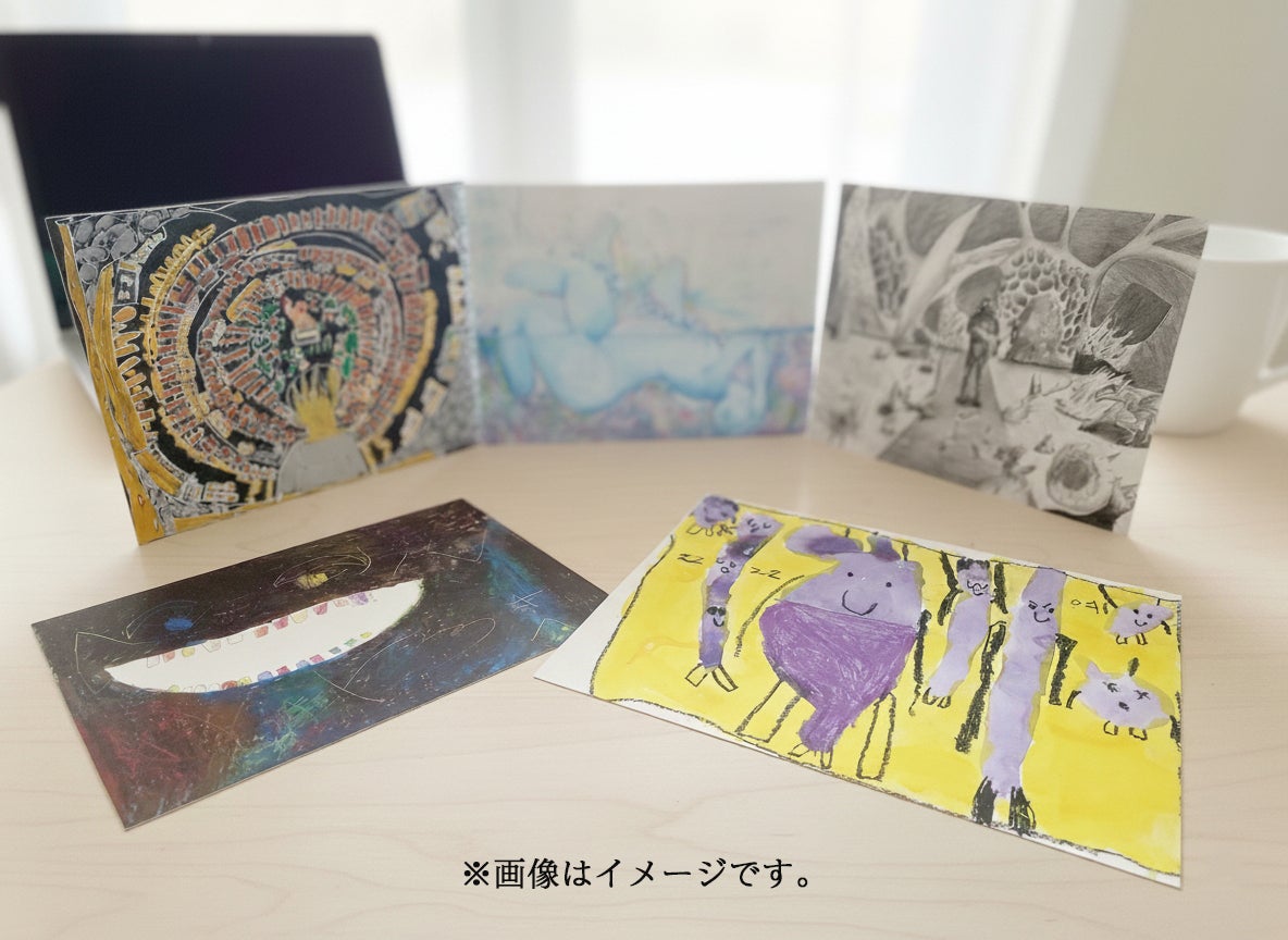 支援の証:このプロジェクトのために制作するGAKUBIオリジナルグッズです。皆様のご支援が、画集出版を支える大きな力となります。ぜひ、この特別なポストカードを手に取って、生徒たちと画集出版の応援をしてください!