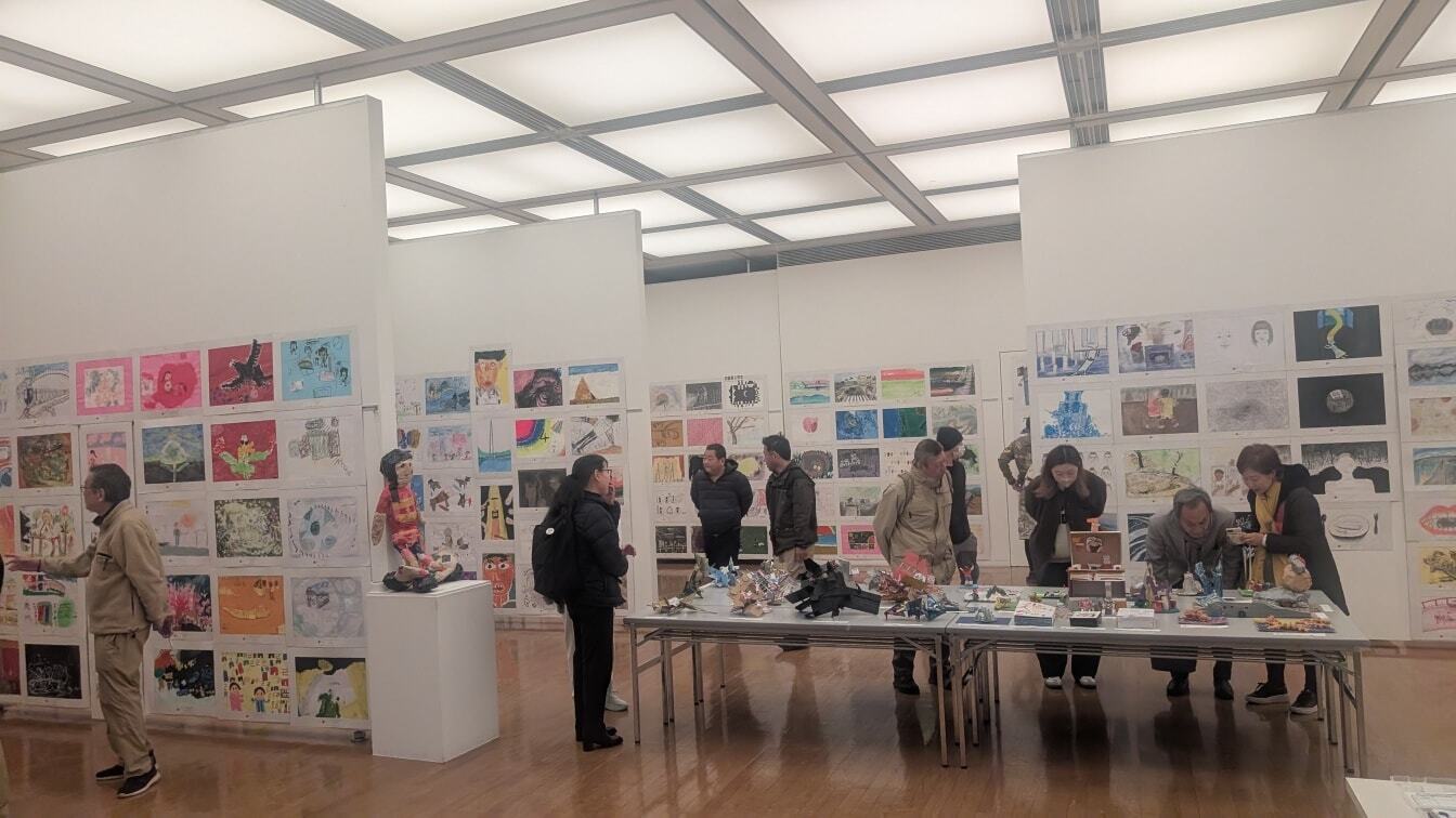 2月26日から2月28日の間、府中市美術館市民ギャラリーにて学美「西東京展」が開催されました。西東京の地域(多摩地域)はとても広いため、2024年は町田、2025年は立川と、西東京の学校がある地域で展示を行っていましたが、今回は西東京の南部地域にある府中市で初めて開催しました。府中市美術館は緑豊かな府中の森公園内にある「生活と美術=美と結びついた暮らしを見直す美術館」をテーマに2000年に開館した美術館。公園を散歩しにきた方がふらっと訪れてくれたり、美術館で行われていた「小出楢重―新しき油彩」展を観に来られた方が、そのついでに立ち寄られたり、終始賑やかな展示になり3日間で365人の方が訪れました。搬出や搬入には、いつも学校を支援してくださる「チマチョゴリ友の会」の方達が手伝いにきてくださり、他にも卒業生や朝鮮大学校在学中の学生や先生たちが手伝いにきてくれました。初日には府中市長も挨拶に訪れてくださり、とてもあたたかい励ましの言葉をいただきました。最終日は西東京朝鮮第1、2美術部の生徒達のアーティストトークが行われ、両校の中学生徒達や保護者の方々、学美西東京展を毎年楽しみに観にきてくださる支援団体「ハムケ」の方々や「チマチョゴリ友の会」の方々で、大盛況でした。大勢の方達の前での発表に緊張しながらも堂々と発表する美術部生徒達の姿がとても誇らしかったです。今回、西東京地域では3年目になる学美展でしたが、地域での関心も増え、訪れる方達も少しずつ増えたように思います。学美を通して、人と人との輪が広がっていくことがとても嬉しく思います。これからも学美展が誰かの励みや癒し、そして勇気を与えるようなあたたかい展示になれるように頑張ります!次のGAKUBI巡回展は、2025年度ラストとなるセッピョル展です!現在2026年6月に茨城朝鮮初中高級学校で開催を予定しております。詳細につきましては、各SNSで追ってお知らせするので、しばらくお待ちください。