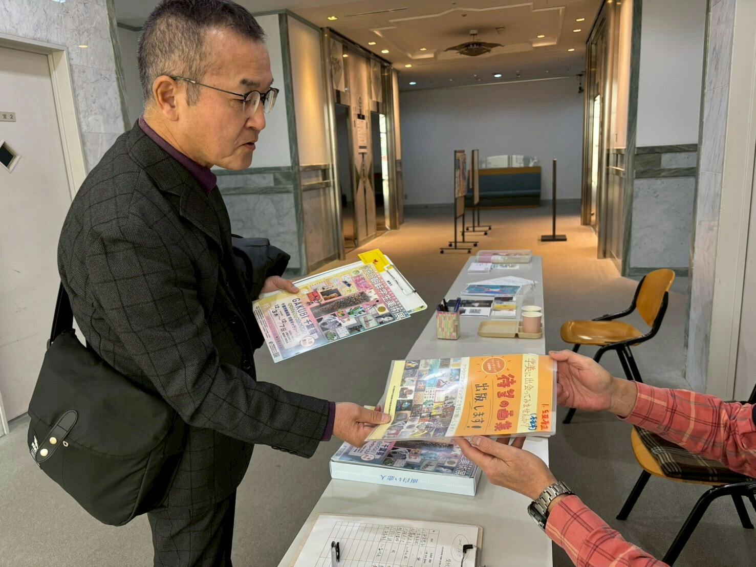 クラウドファンディングのチラシも、たくさんの来場者に手に取っていただいています。