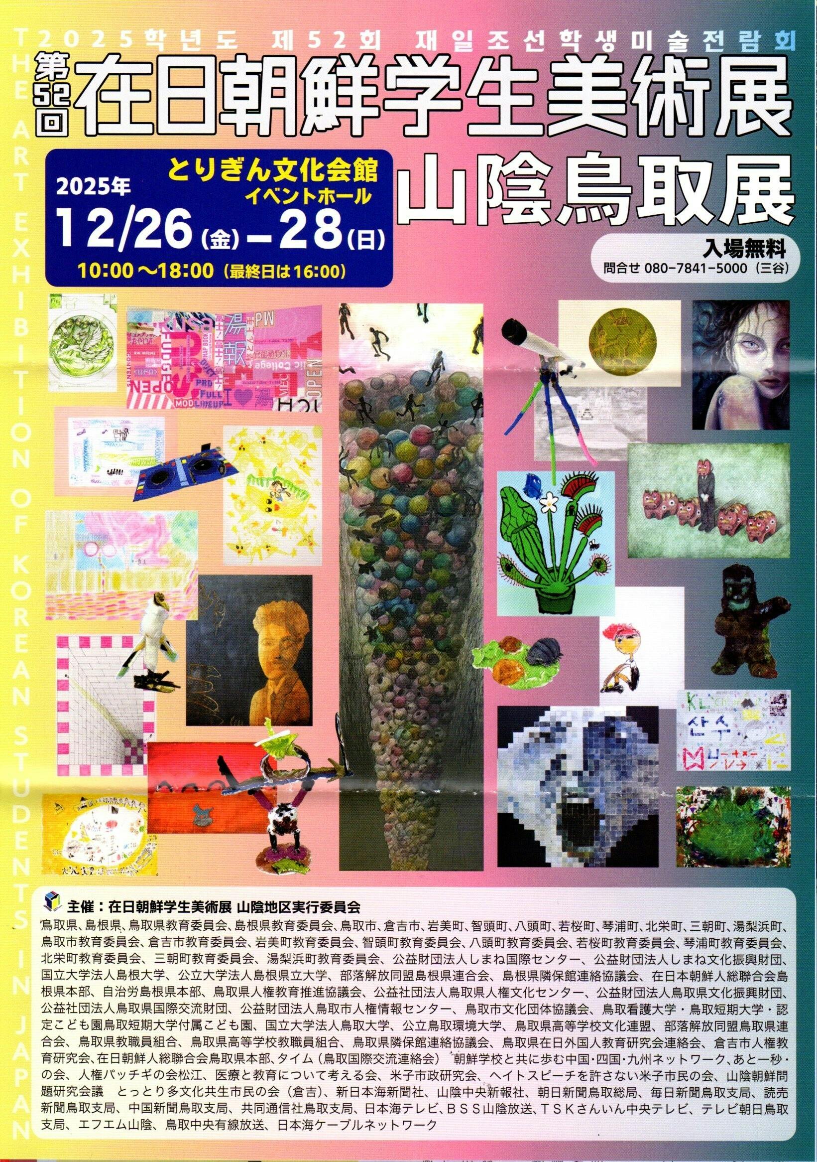 その中でも特に刮目すべきは、学生美術展の作品をこよなく愛し、我々の活動に賛同してくださる山陰地区実行委員会の方々をはじめ多くの日本の方々のご協力で、ウリハッキョ(朝鮮学校)の無い鳥取・島根においても地方巡回展が毎年開催されている事です。