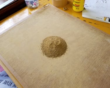 採取した粘土を乾かし、細かく砕き不純物を取り除くと、土は小麦粉みたいにサラサラになります。