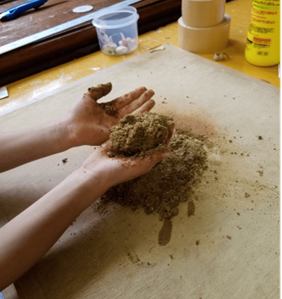 その土を水を入れ、よく捏ねると土粘土の完成です。