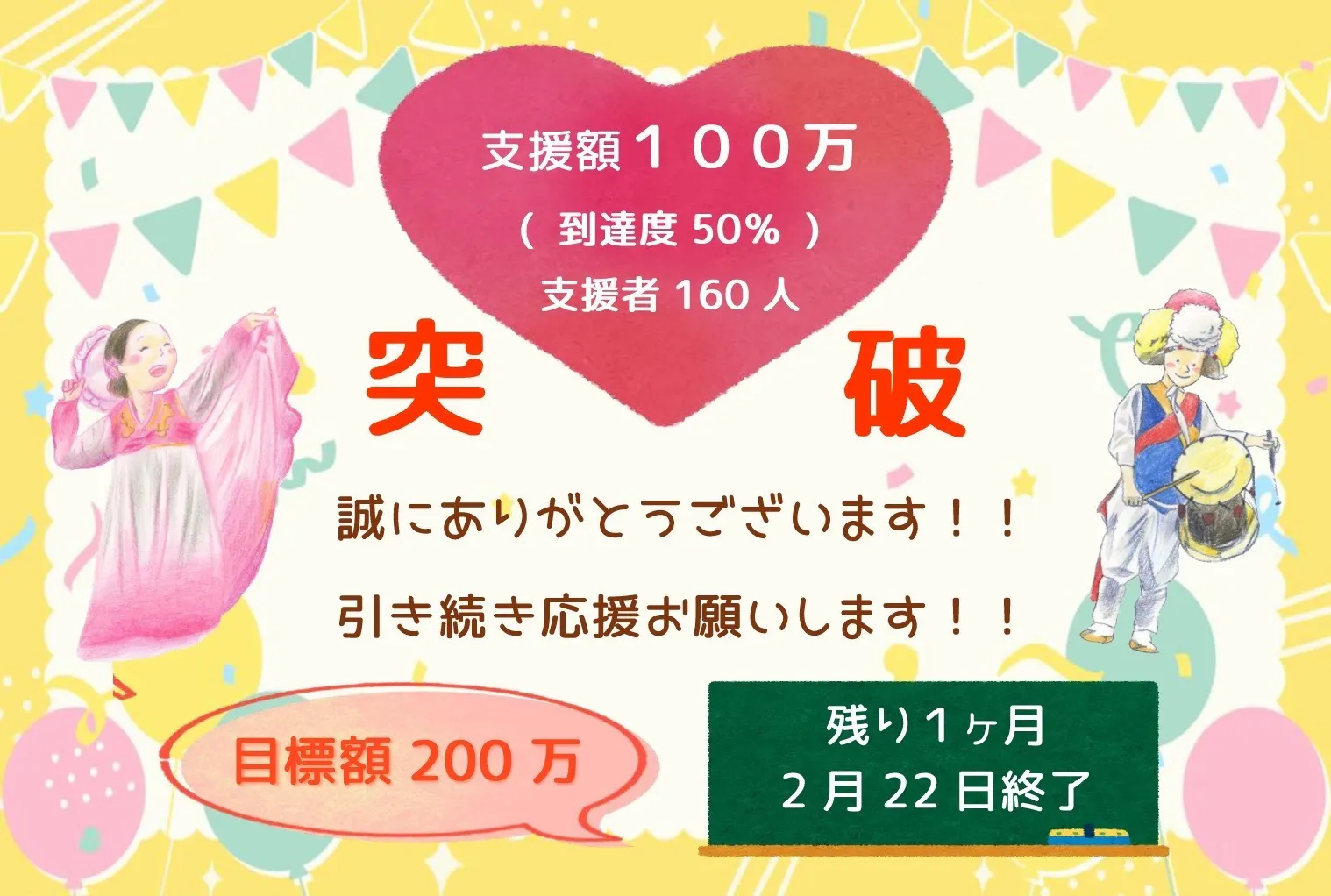 残す所あと1ヶ月、引き続き目標額200万円まで何卒ご支援よろしくお願い致します!!!