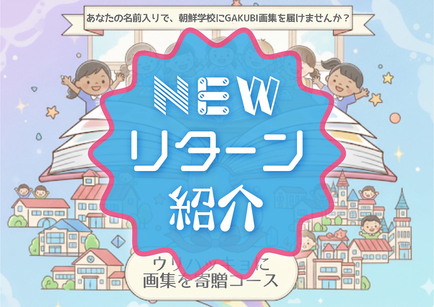 今回のリターンの中で、これだけは『あなた』の元に届きません。その代わりに、ウリハッキョ(朝鮮学校)の子どもたちの元へ、あなたのお名前(またはニックネーム)を添えてGAKUBI画集を1冊プレゼントします。
