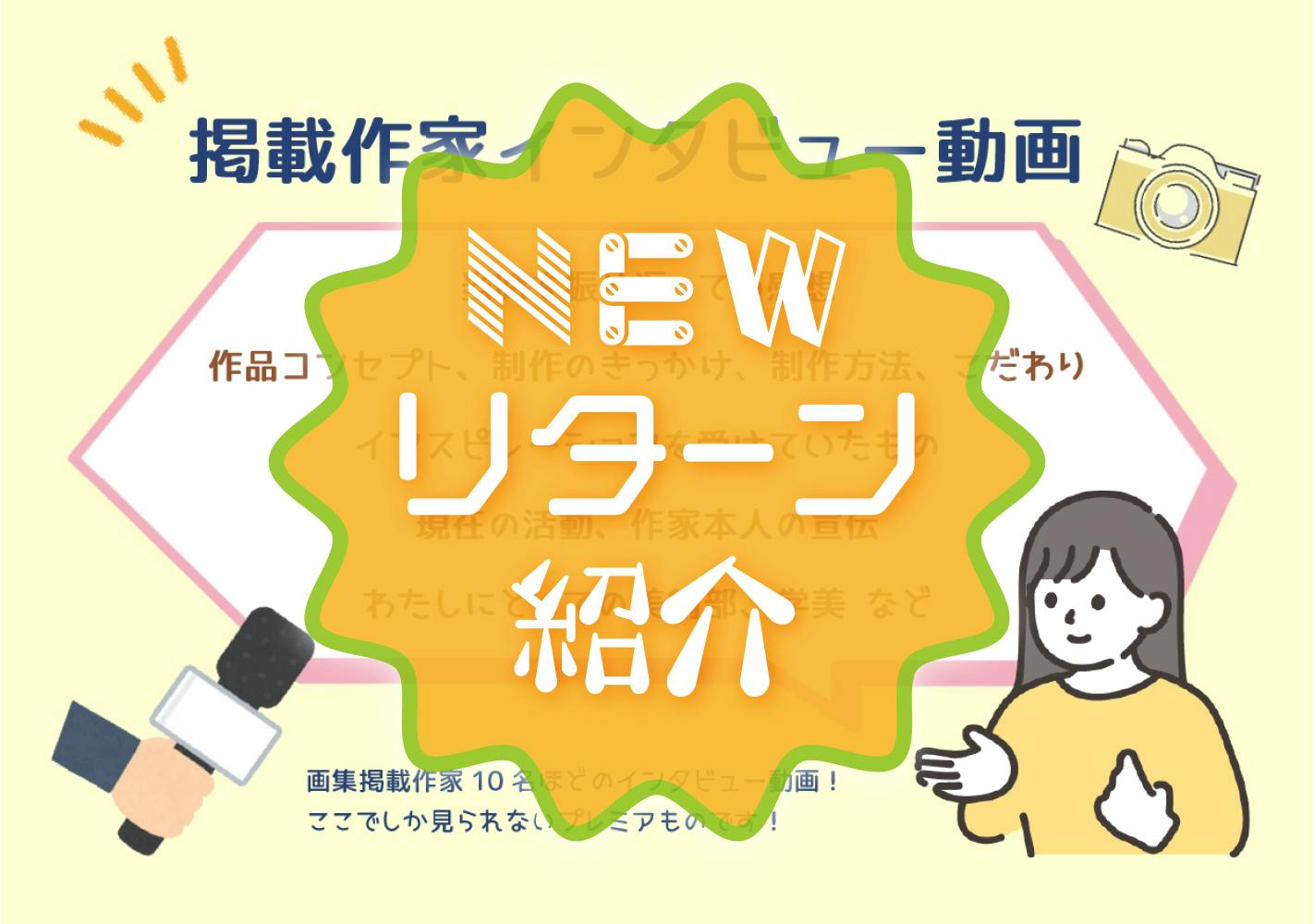 今回の新リターン紹介は、作品の裏側にある物語を深く知ることができるプレミアムなリターン、【掲載作家インタビュー動画集】をご紹介します!