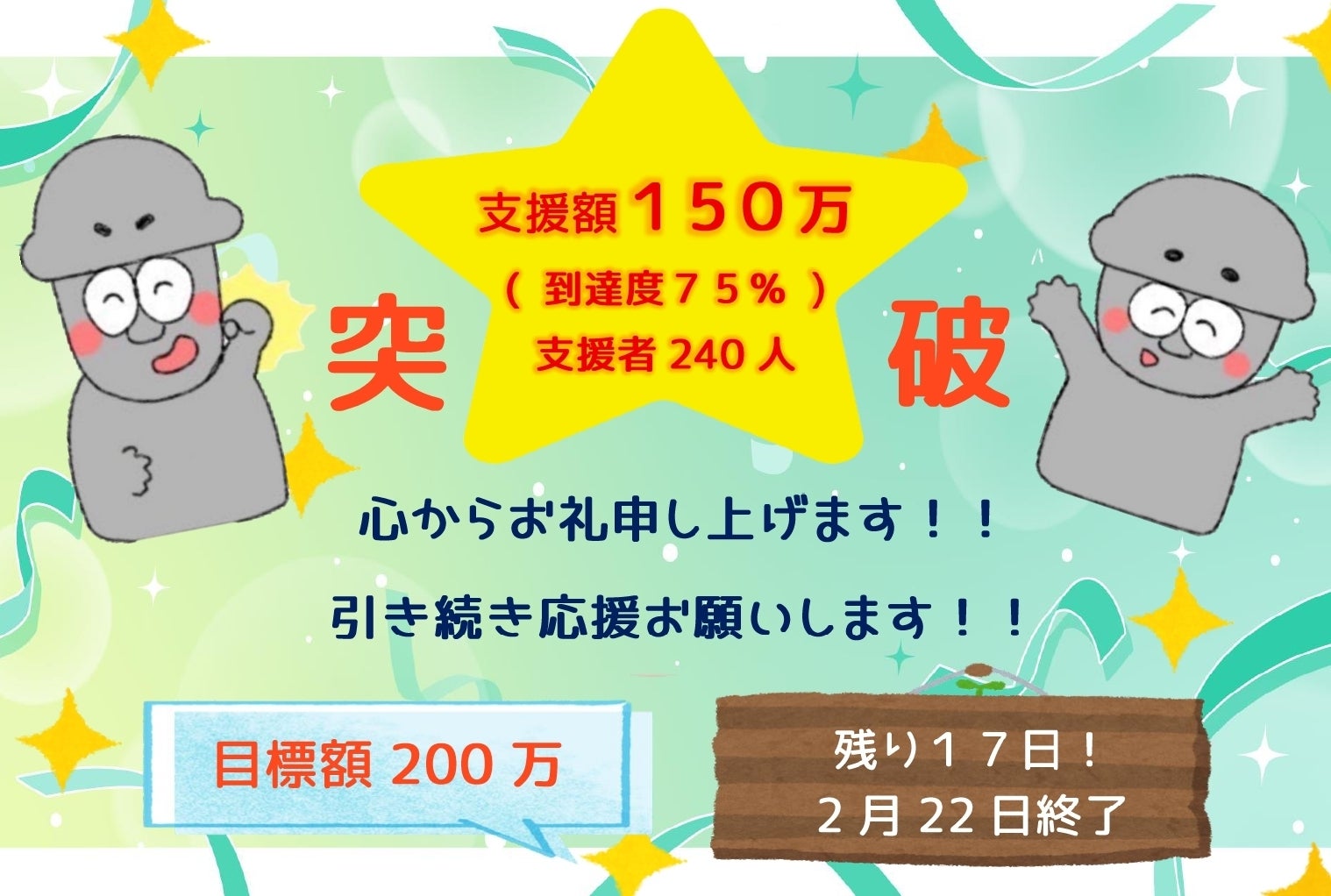 全国の皆さまのご協力により、昨日支援額150万を突破しました!!