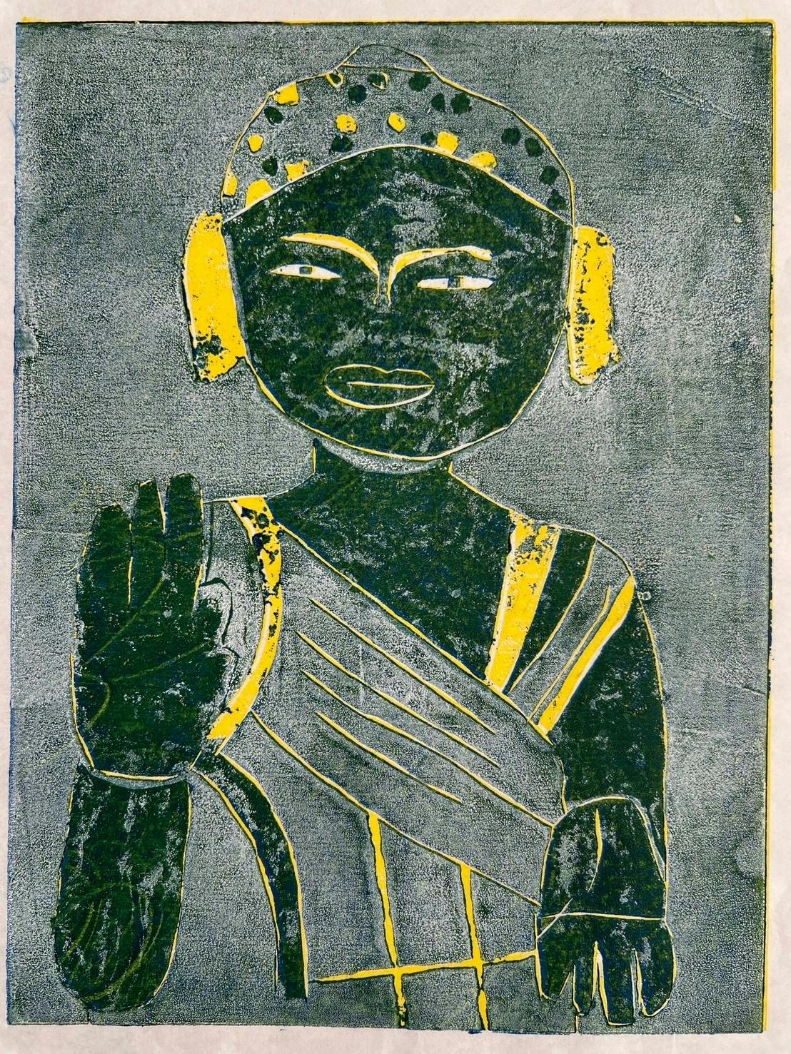 彫り進み版画は、版を段階的に彫り、色を変えながら刷っていくことで変化をつける技法です。