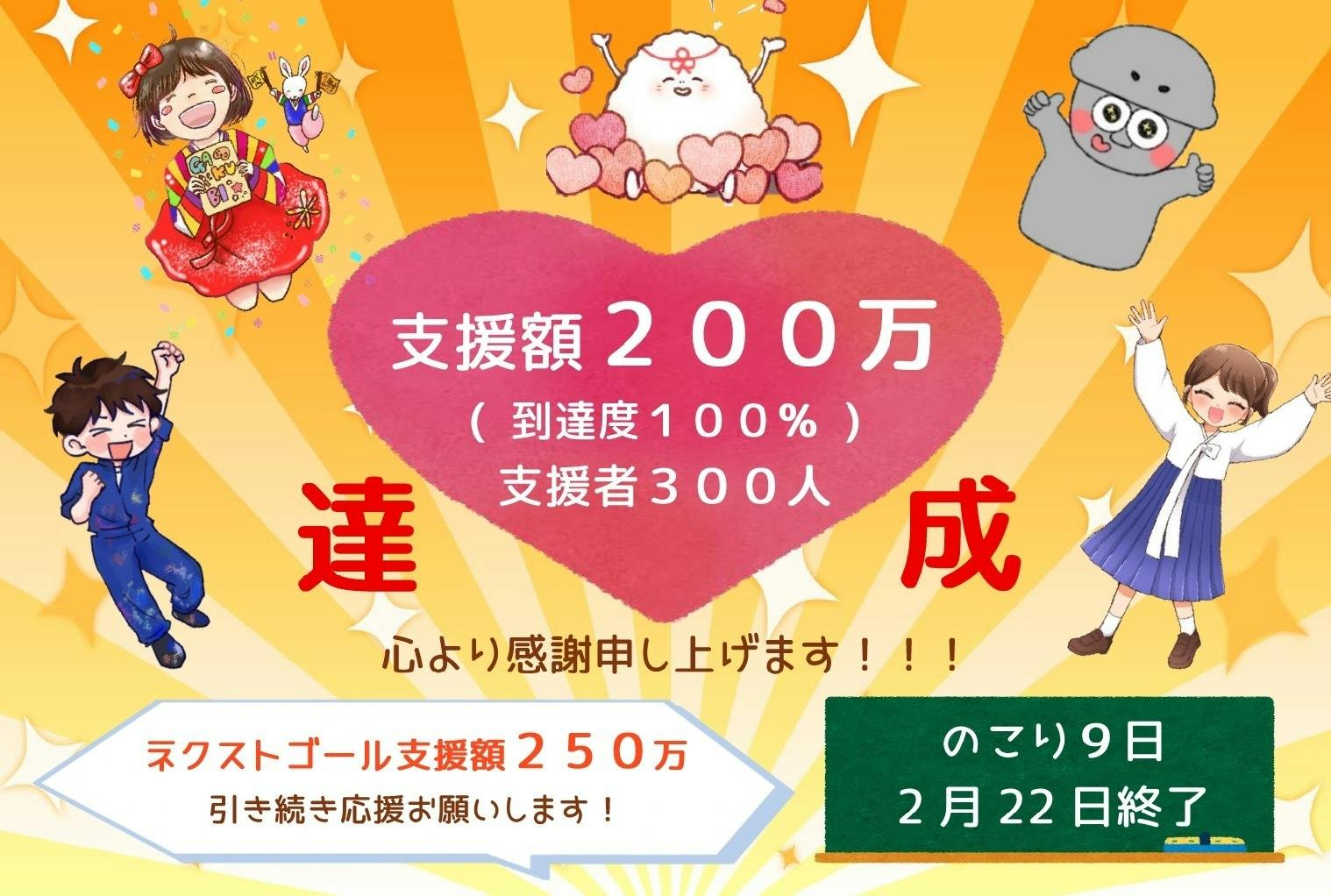 ネクストゴールを250万円とし、2月22日まで引き続きクラウドファンディングは行いますので、是非応援よろしくお願い致します!!
