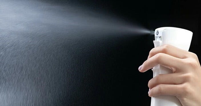 ① 匂いや菌の気になるところに30cm以上はなして吹付けます。