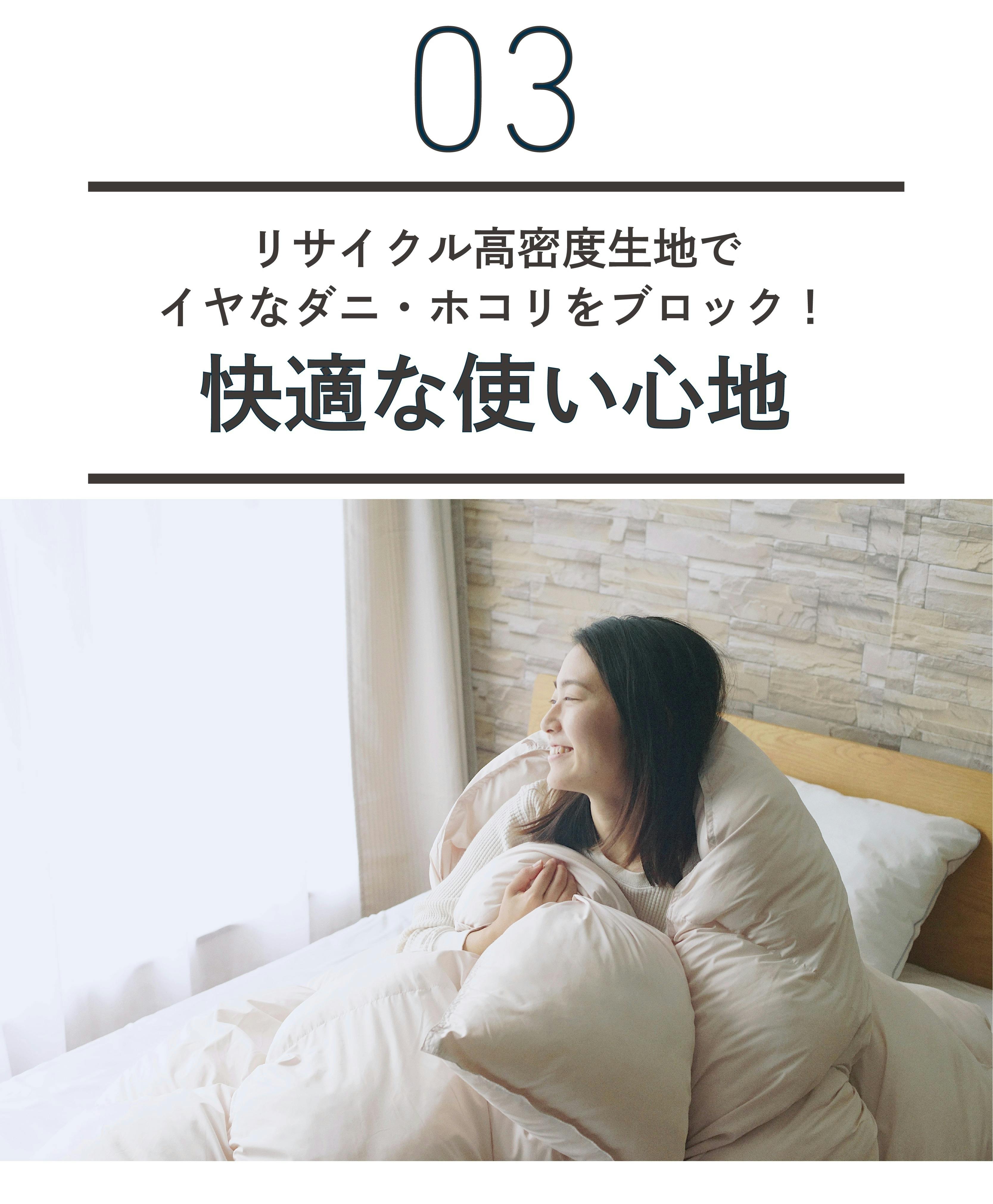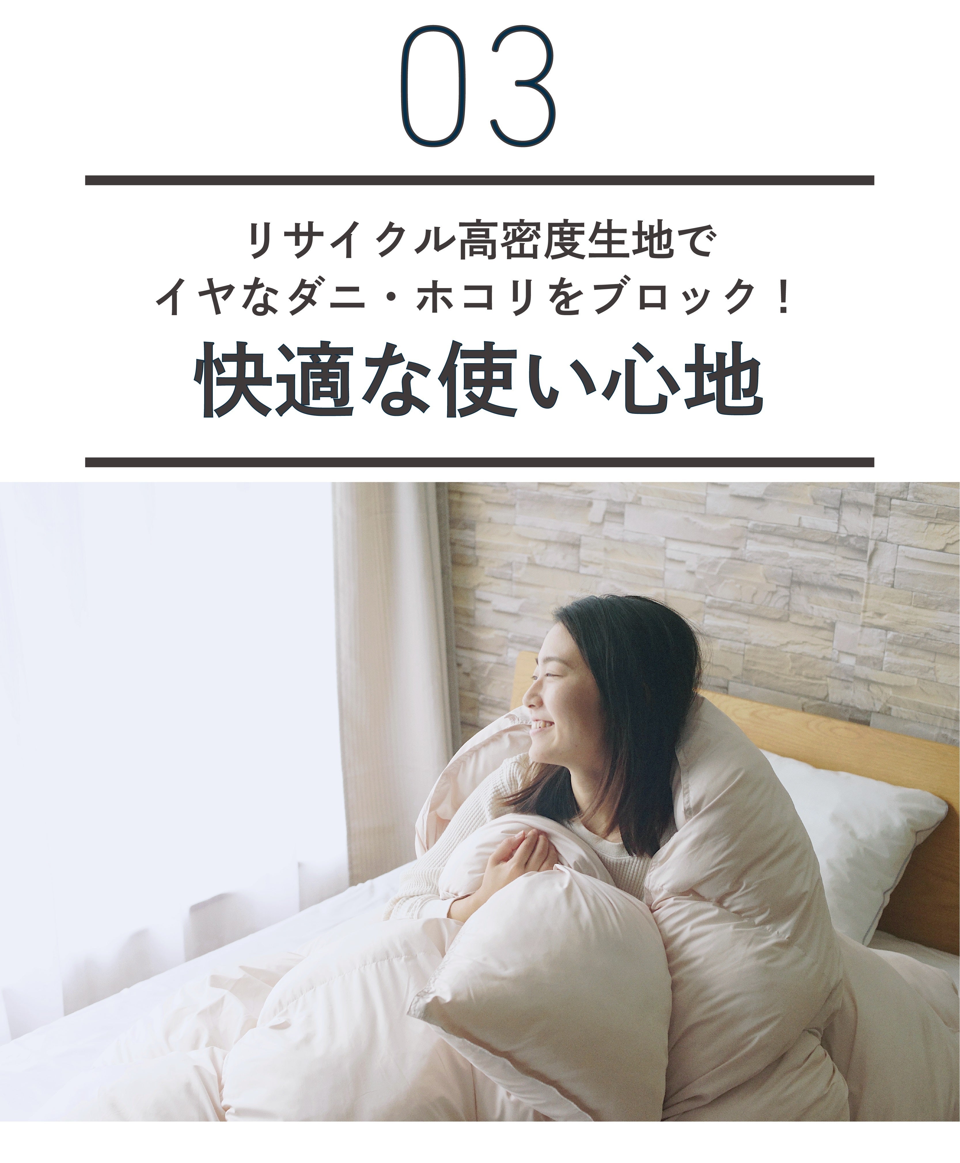 ふとん側生地:ポリエステル100%(リサイクル繊維レプリーブ30%)