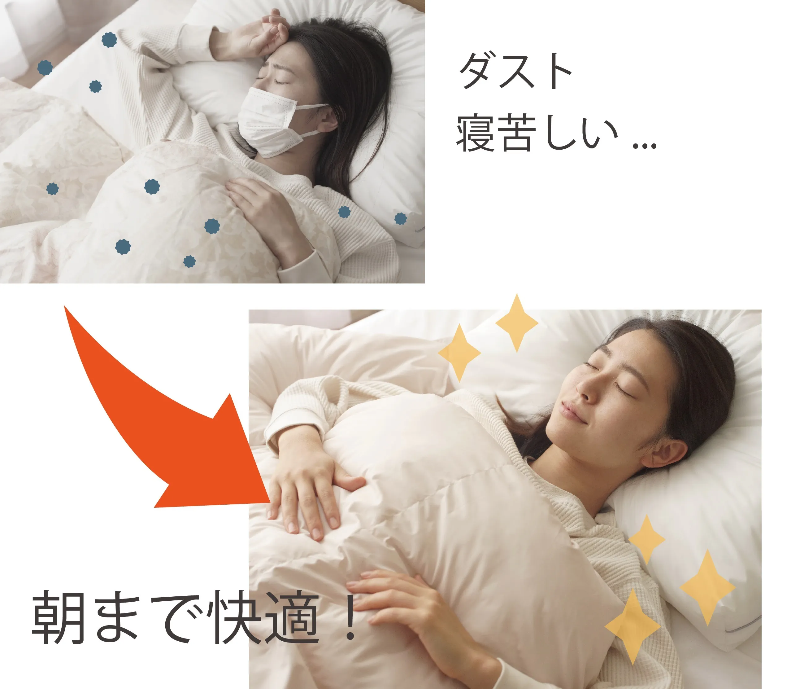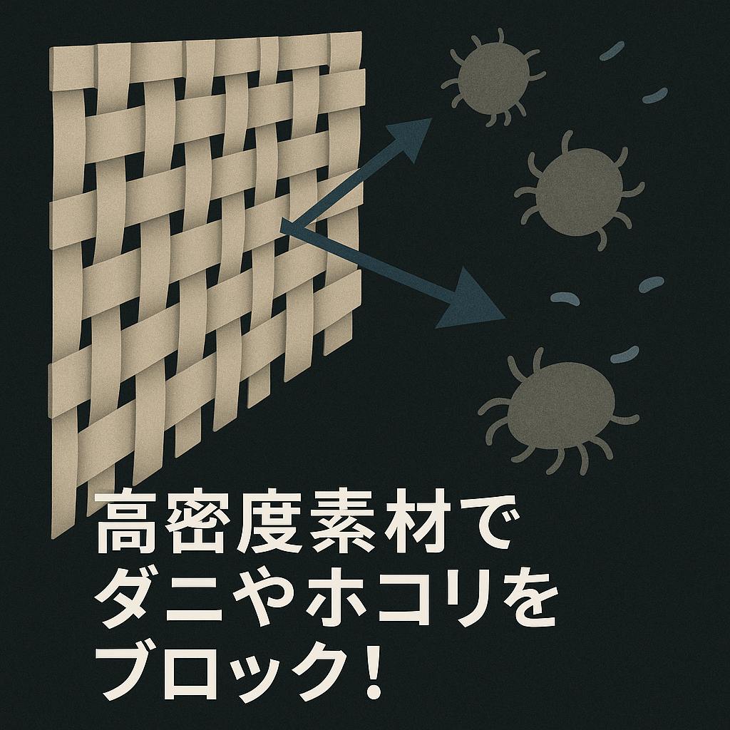 高密度生地のため、ホコリが出にくく、ほこりに敏感な方も、快適に使えます。
