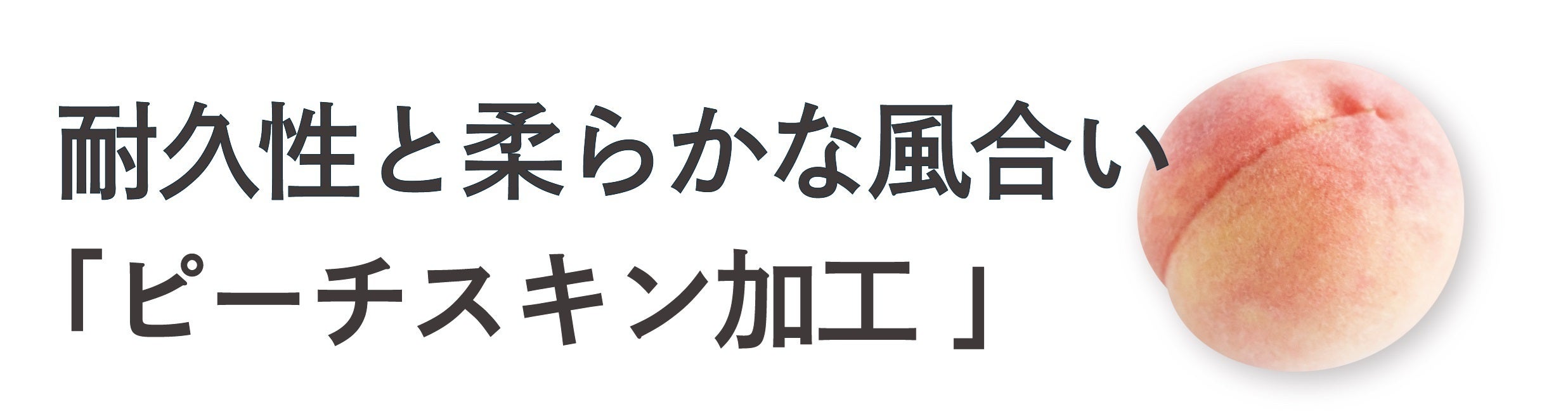 薄起毛と呼ばれる、桃の薄皮のような柔らかな風合いの加工を施しました。たて糸とよこ糸の密度を高め、耐久性もアップ。