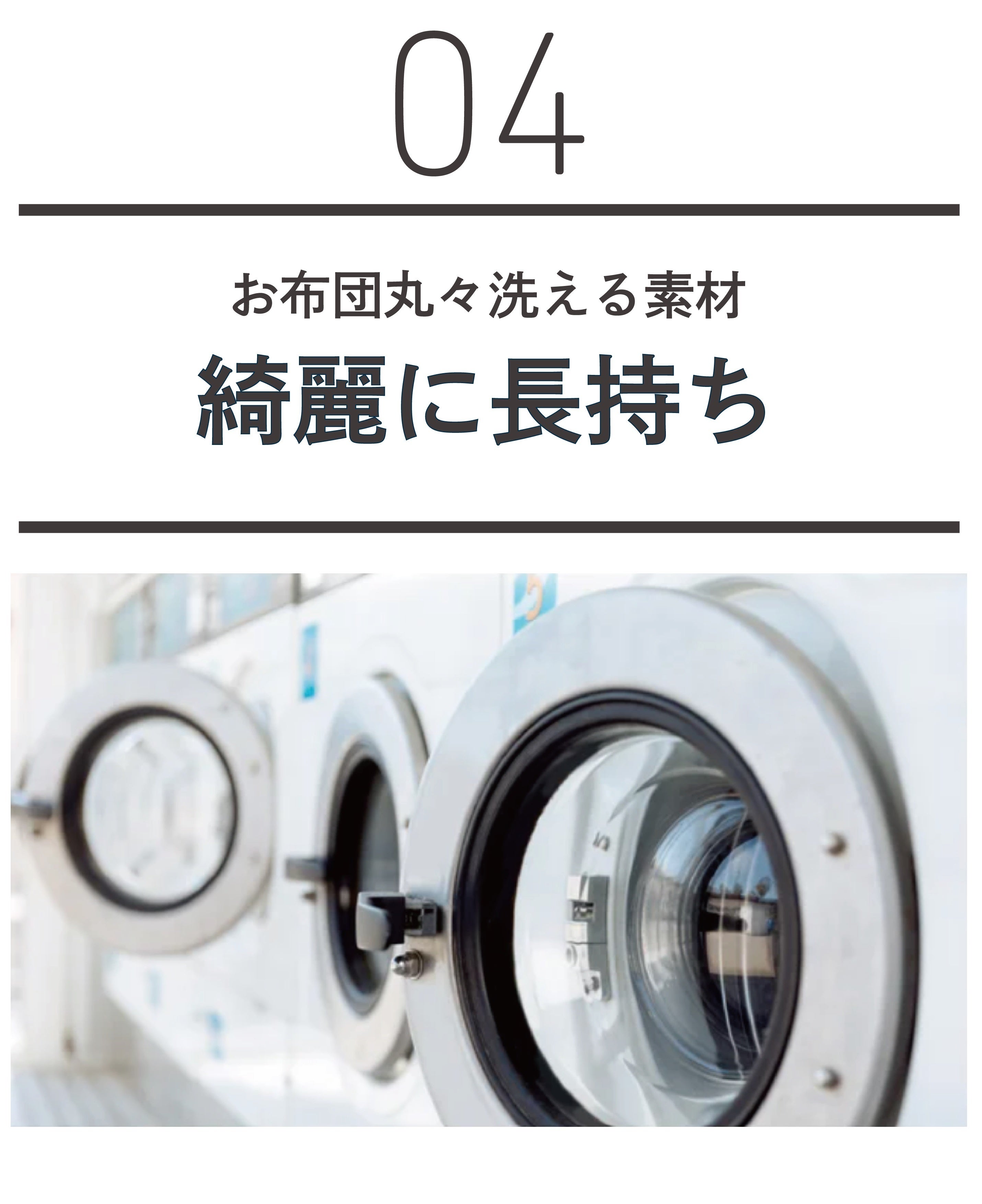 いつでも清潔を保てるように、丸洗い+乾燥ができるのも当商品の特長です。