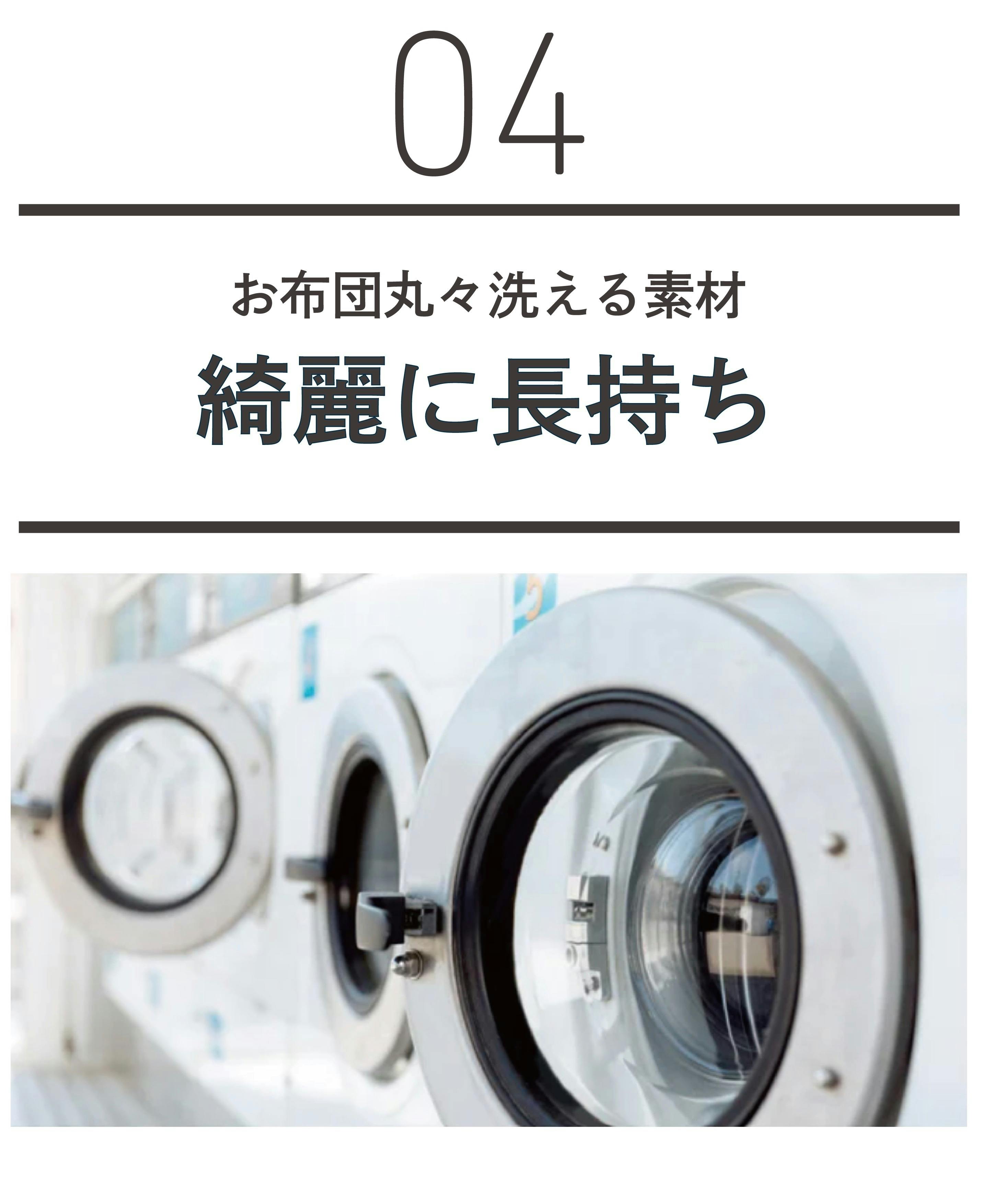 洗っても、中綿を解してふかふかが長持ち。気軽に洗えてお子様やご高齢者、ペットのいるご家庭にもぴったりです。