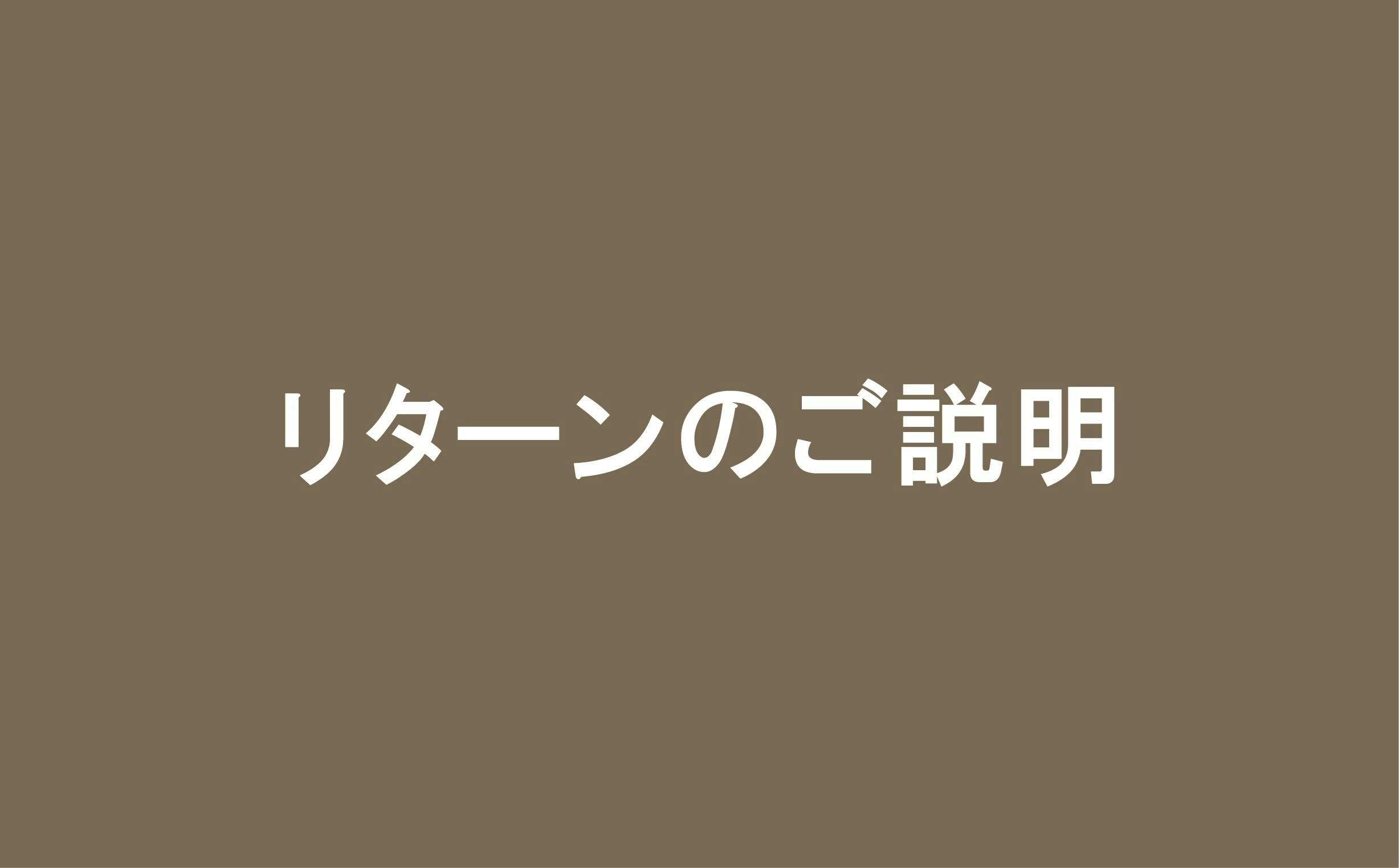 ●リターン価格:各リターン記載の通り *商品内容についてはリターン欄記載の通り※リターン価格とは別にCAMPFIRE(machi-ya)のシステム利用料として1支援毎に支援金額1万円未満の場合は250円(税込)/ 1万円以上の場合は支援額の2.5%(税込)が支援者様の負担となります。※上記システム利用料はCAMPFIREが受け取るもので、当社が受領するものではございません。