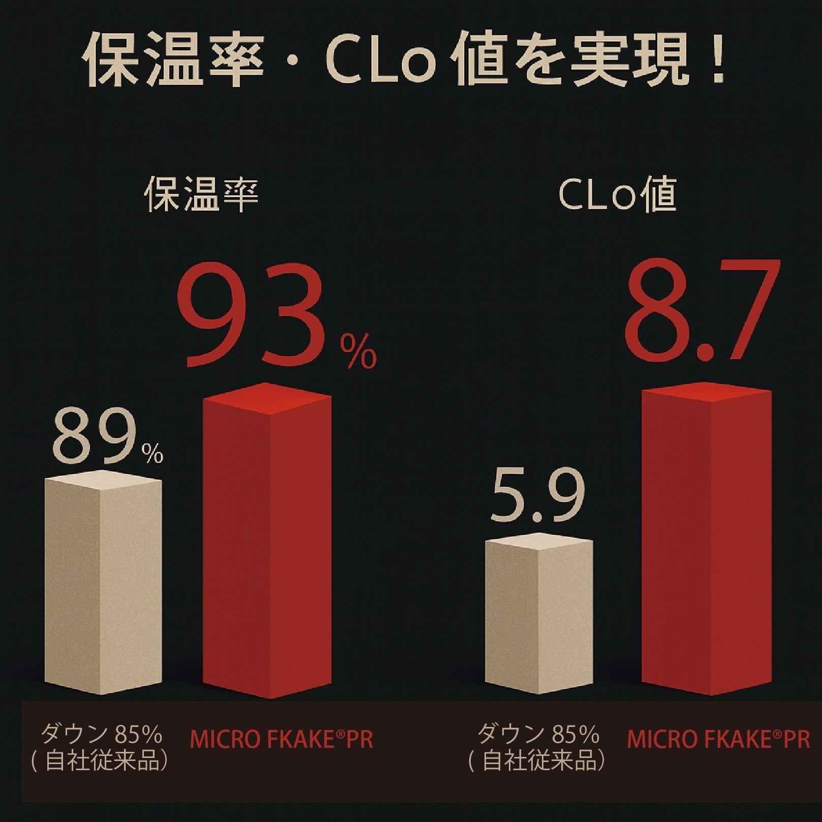 羽毛に比べ、圧倒的な保温率・CLo値を実現!!!暖かさを逃しません。