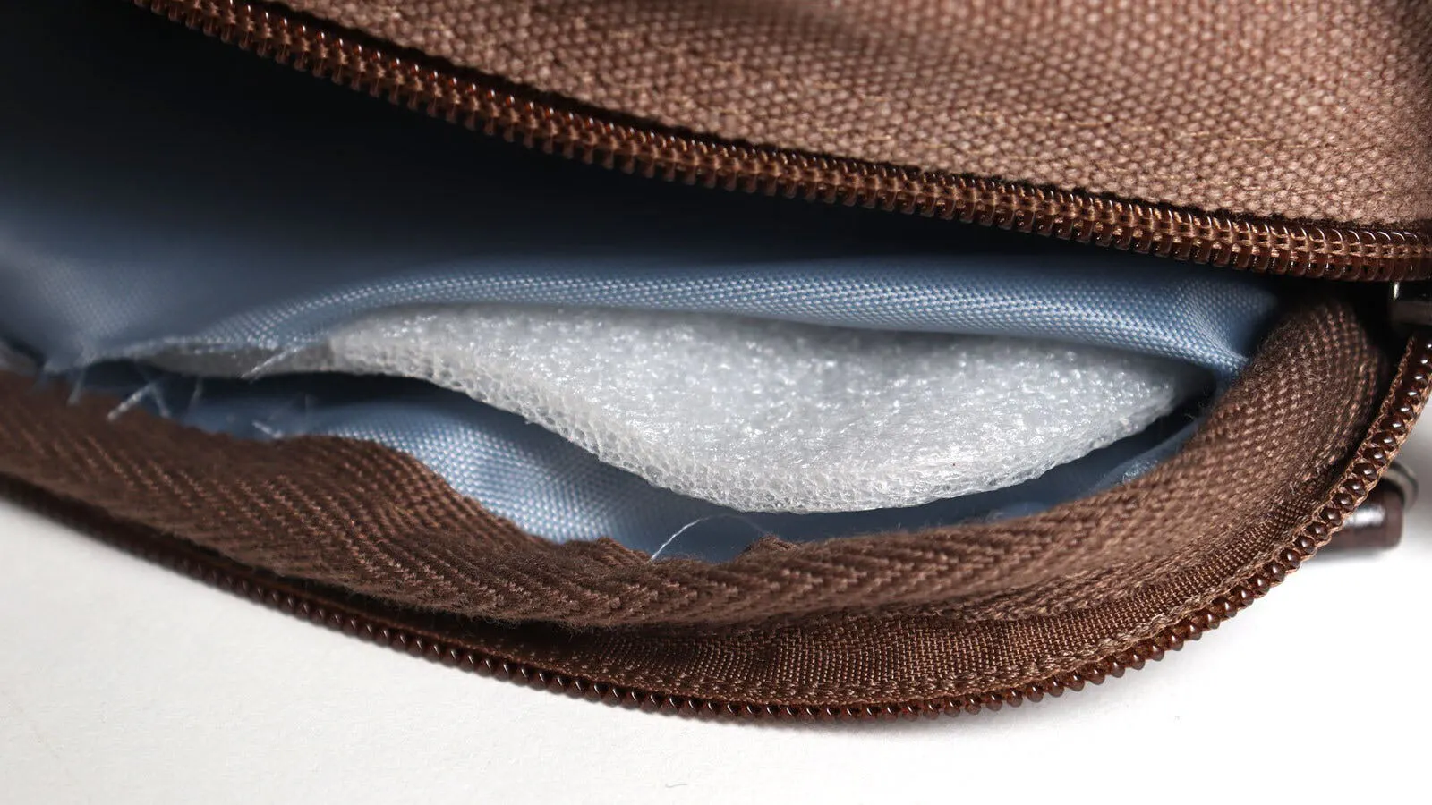▼クッション材が挟み込まれてガジェット収納でも安心です(断面写真)