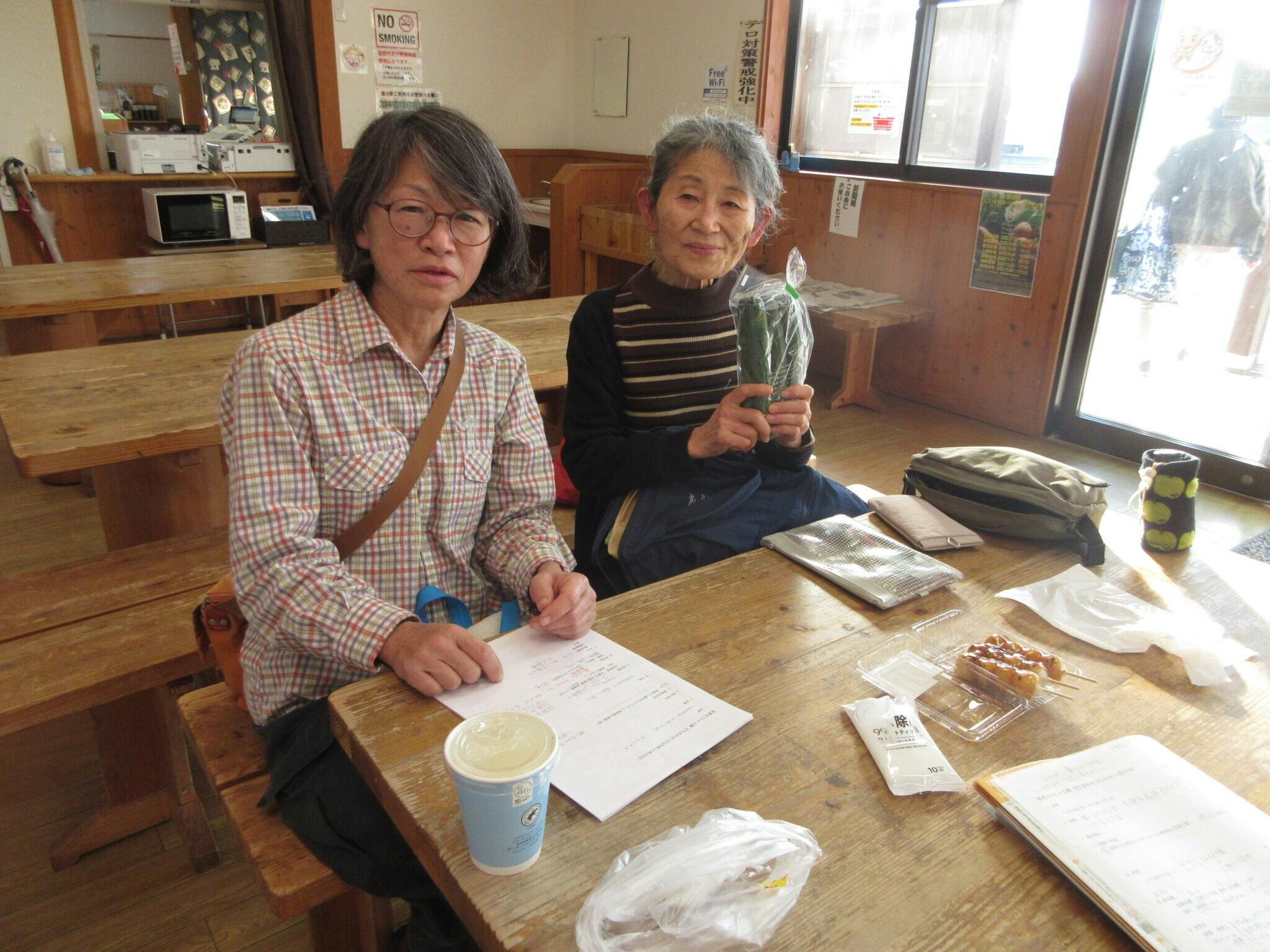 同じく有機栽培農家の山岸祐子さんのお二人。(山岸さんは農作業のため、先に帰られたのでいただいたキュウリのみの撮影)