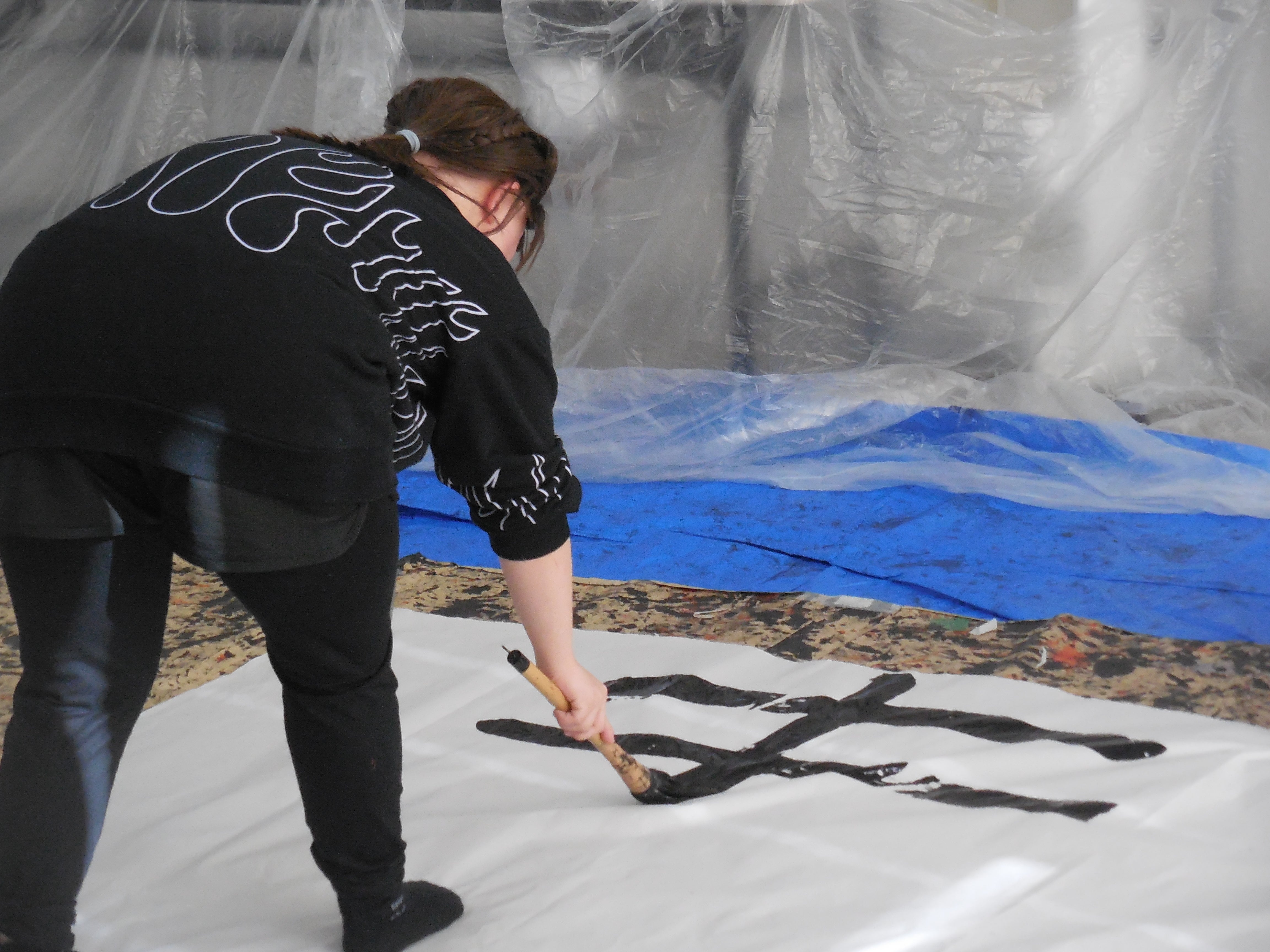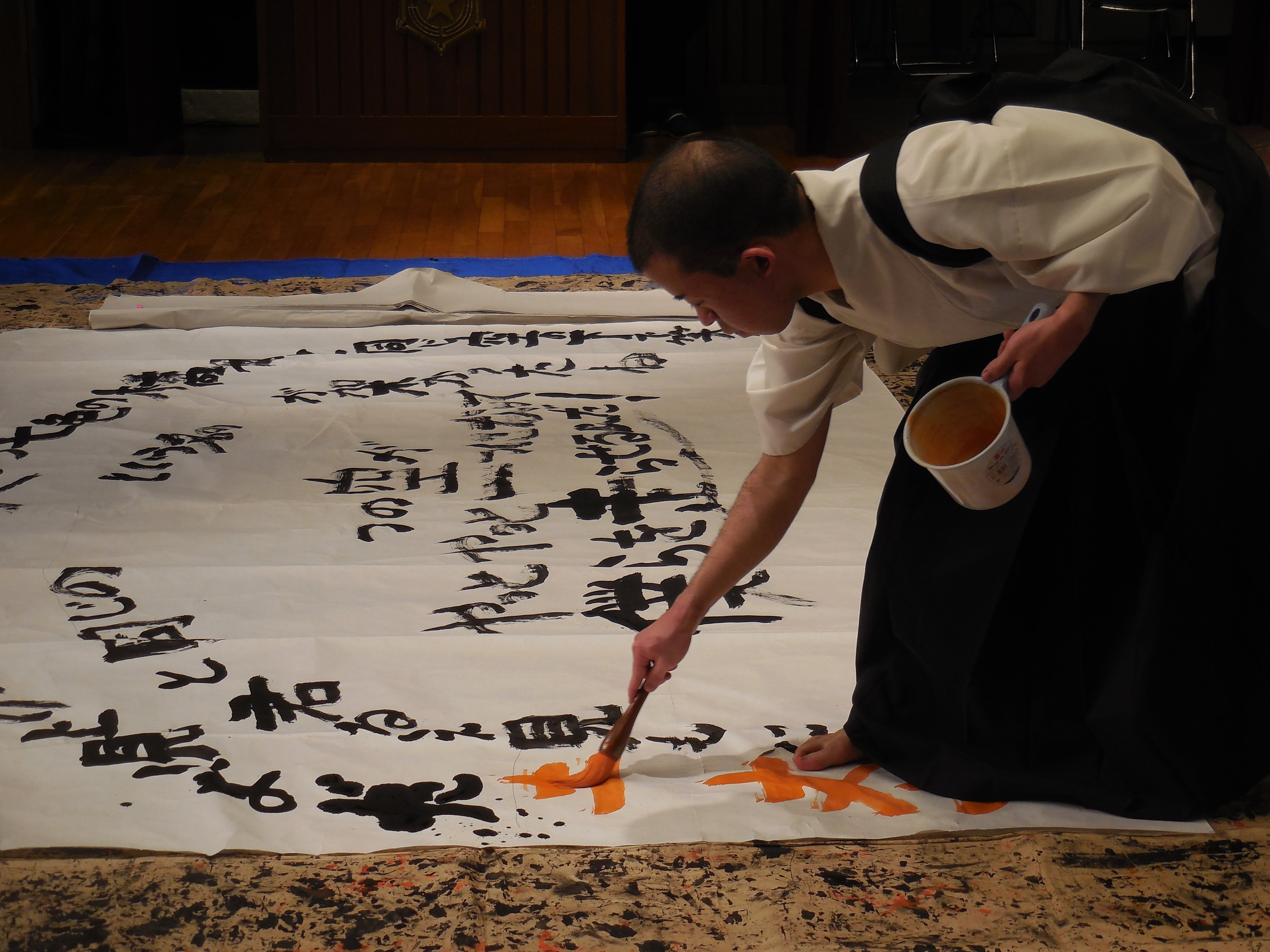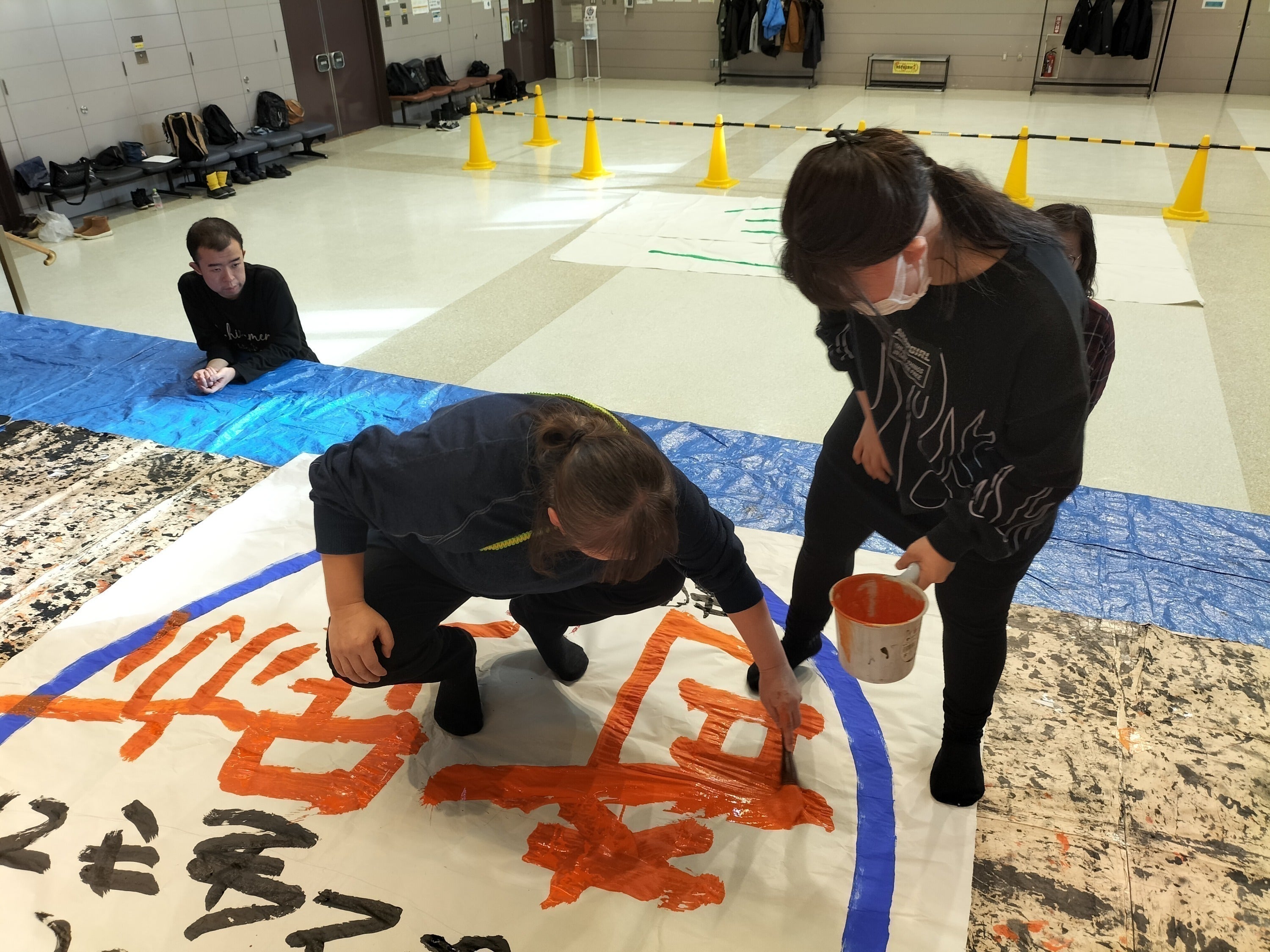 9月下旬~3月 週1回事業所内又は外部会場にて書道パフォーマンスの練習を行う。