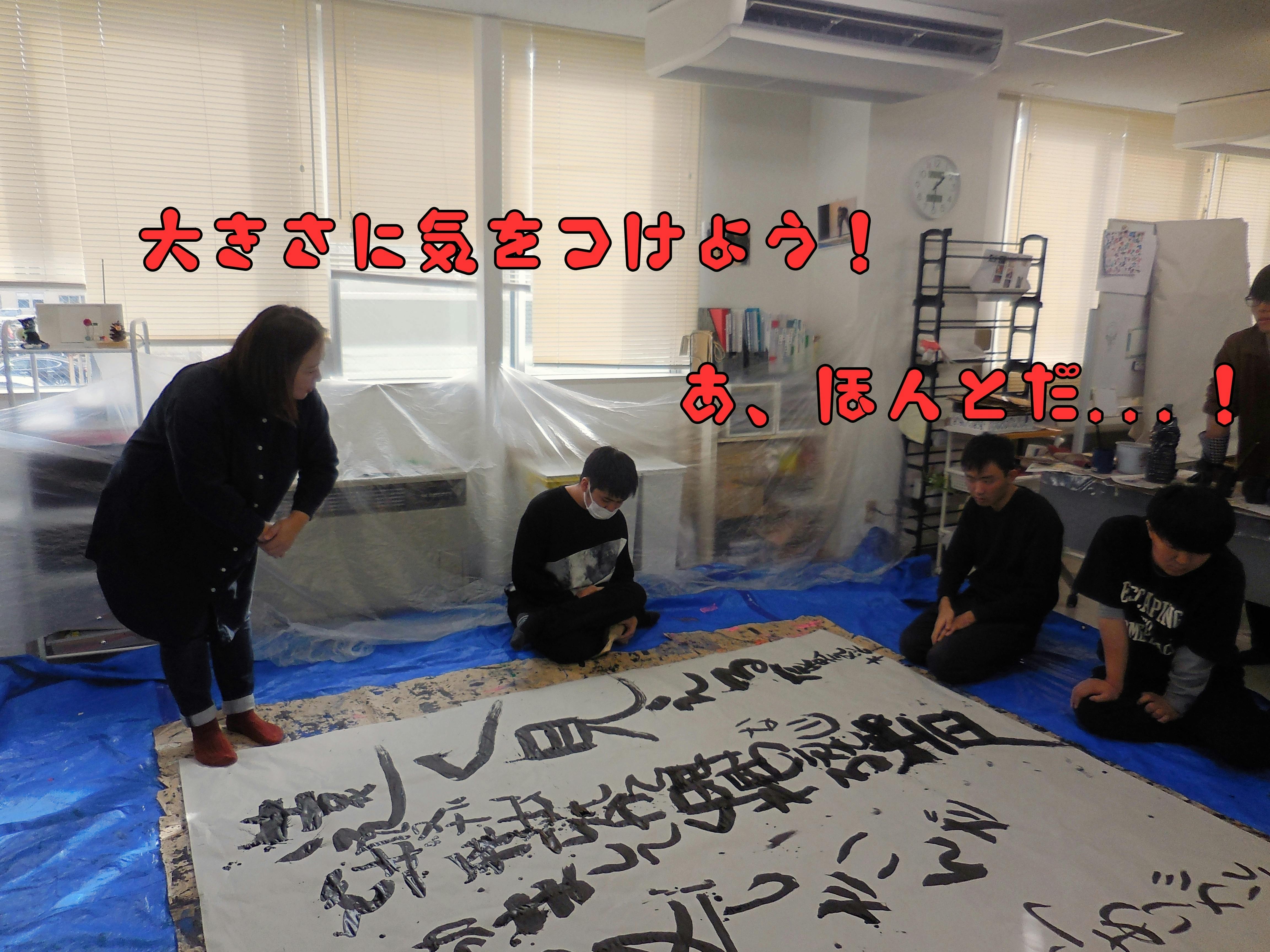 大書き用の紙は5m×2.5mと、部屋の端から端まである巨大なものですが...