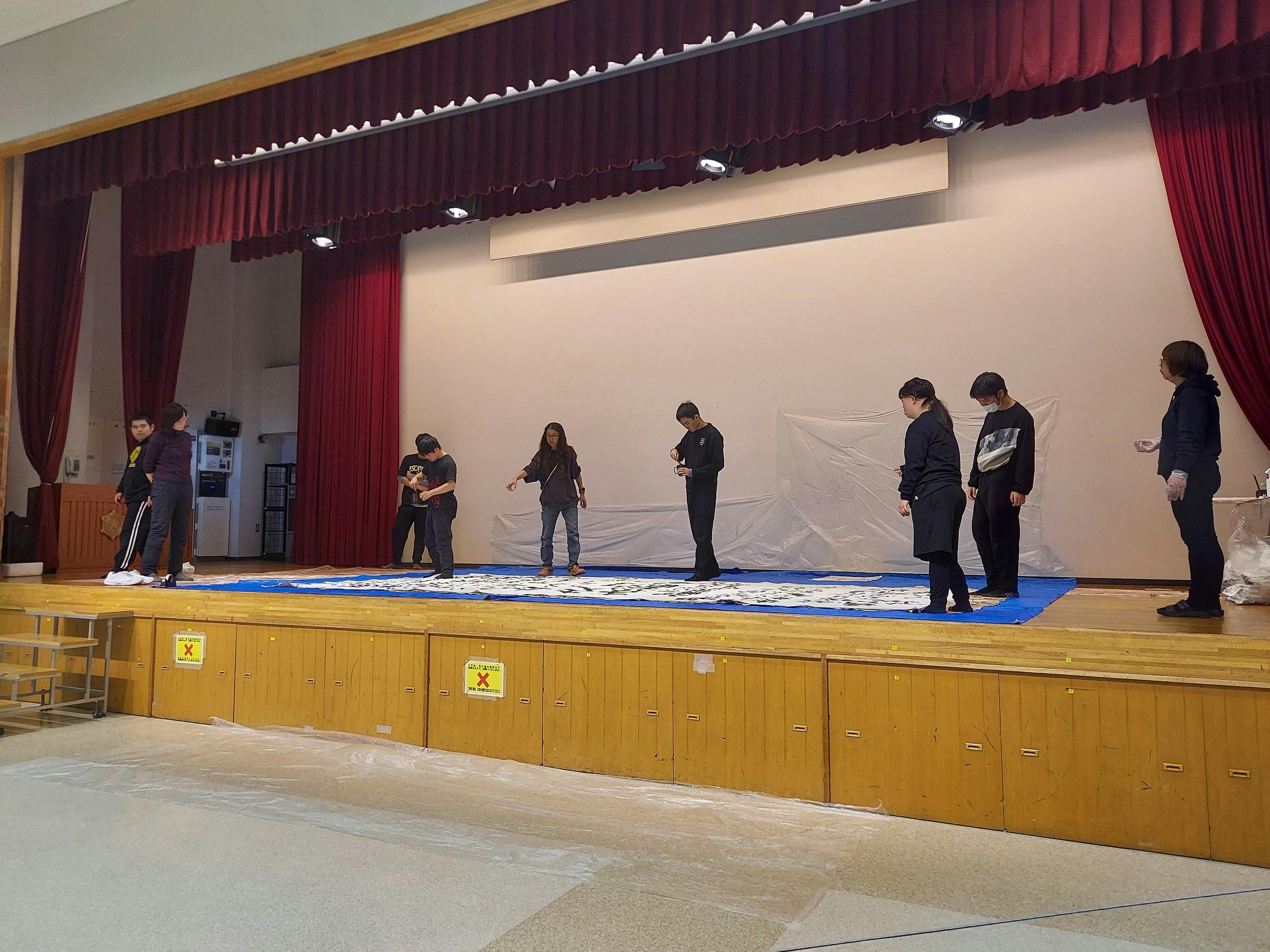 今回は実際の本番でも使用する区民センターのステージでの練習をお見せします。