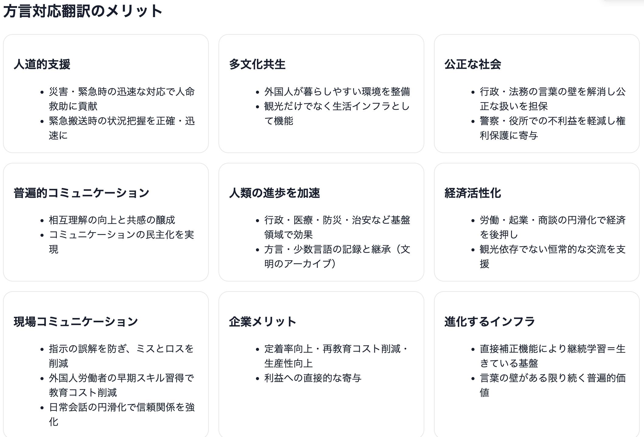 ✅ 70言語以上翻訳・47都道府県方言対応をすでに実装