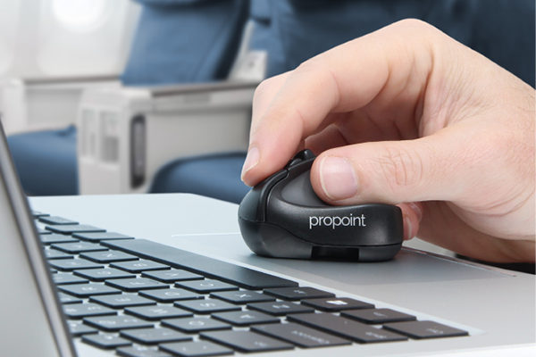 マウスの為にテーブルは必要ありません。こういう状況でも「 ProPoint™ 」の凄さが発揮できます。小スペースの場所、カフェでも飛行機でも、電車でもバスでも、ノートパソコンを膝に置いて、パソコンの手を置く場所などの小さなスペースで快適に使用できます。