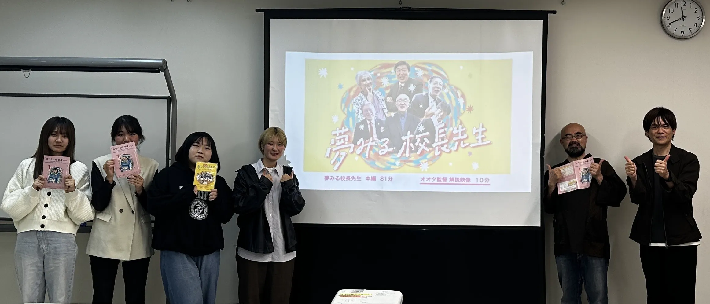 本番に先立ち、基調映画として上映する「夢みる校長先生」の試写会を行いました!当日バタバタしてじっくり見られないだろう実行委員のメンバーたちで観賞。通知表をなくした!宿題をなくした!校則をなくした!……そんな校長先生の話や学校の様子が映し出されます。