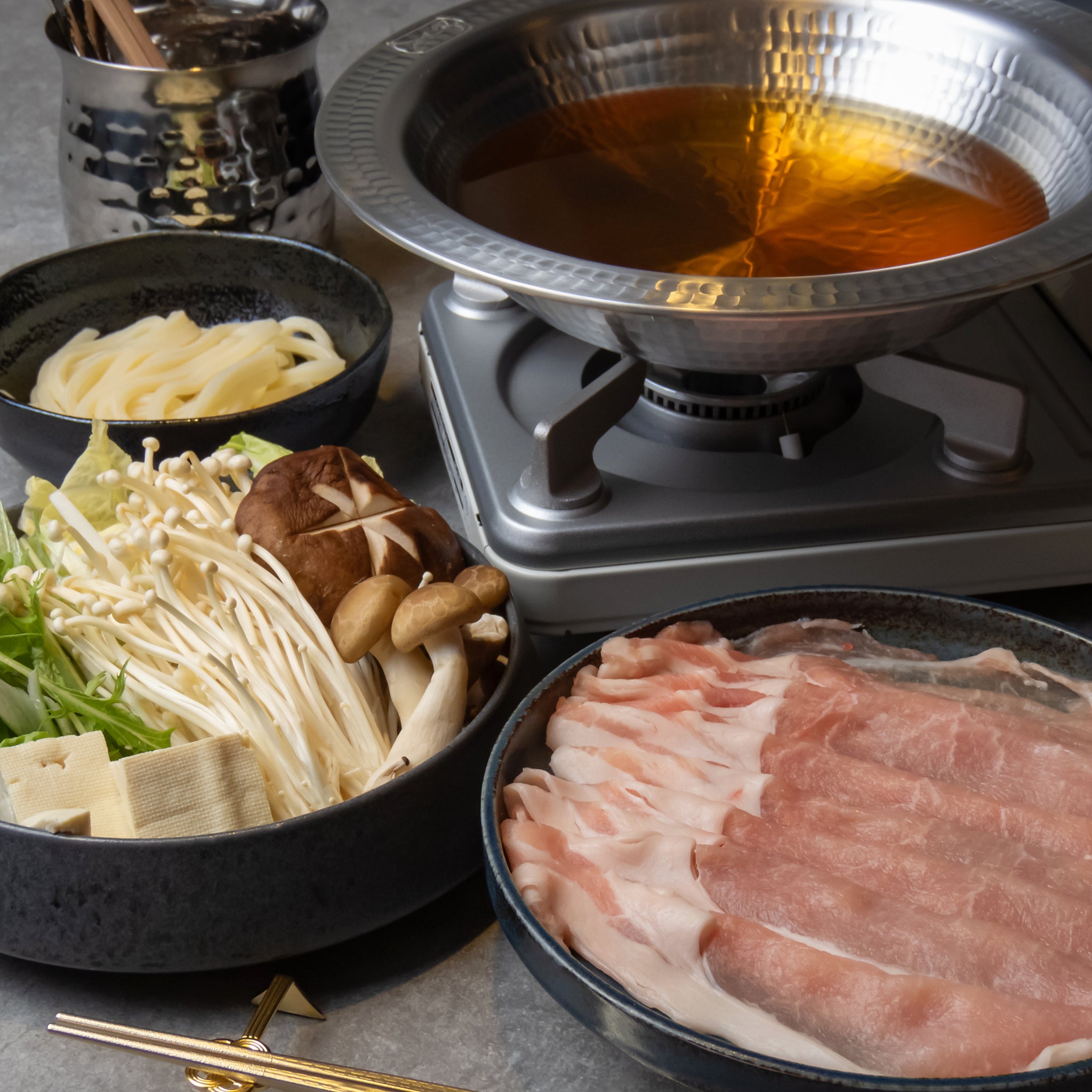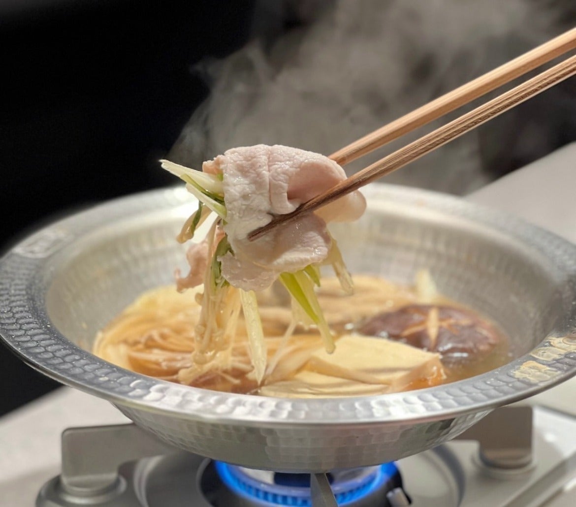 地元の精肉店さんから仕入れたさばきたてのお肉と農家さん直送の八百屋さんから仕入れた新鮮お野菜をお出汁でどうぞ