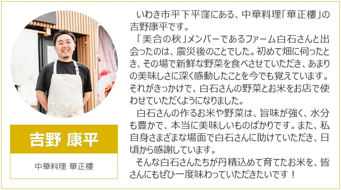 そして、食卓で、飲食店で、「このお米はね……」と語れるような物語を、一緒に広げていきたいのです。