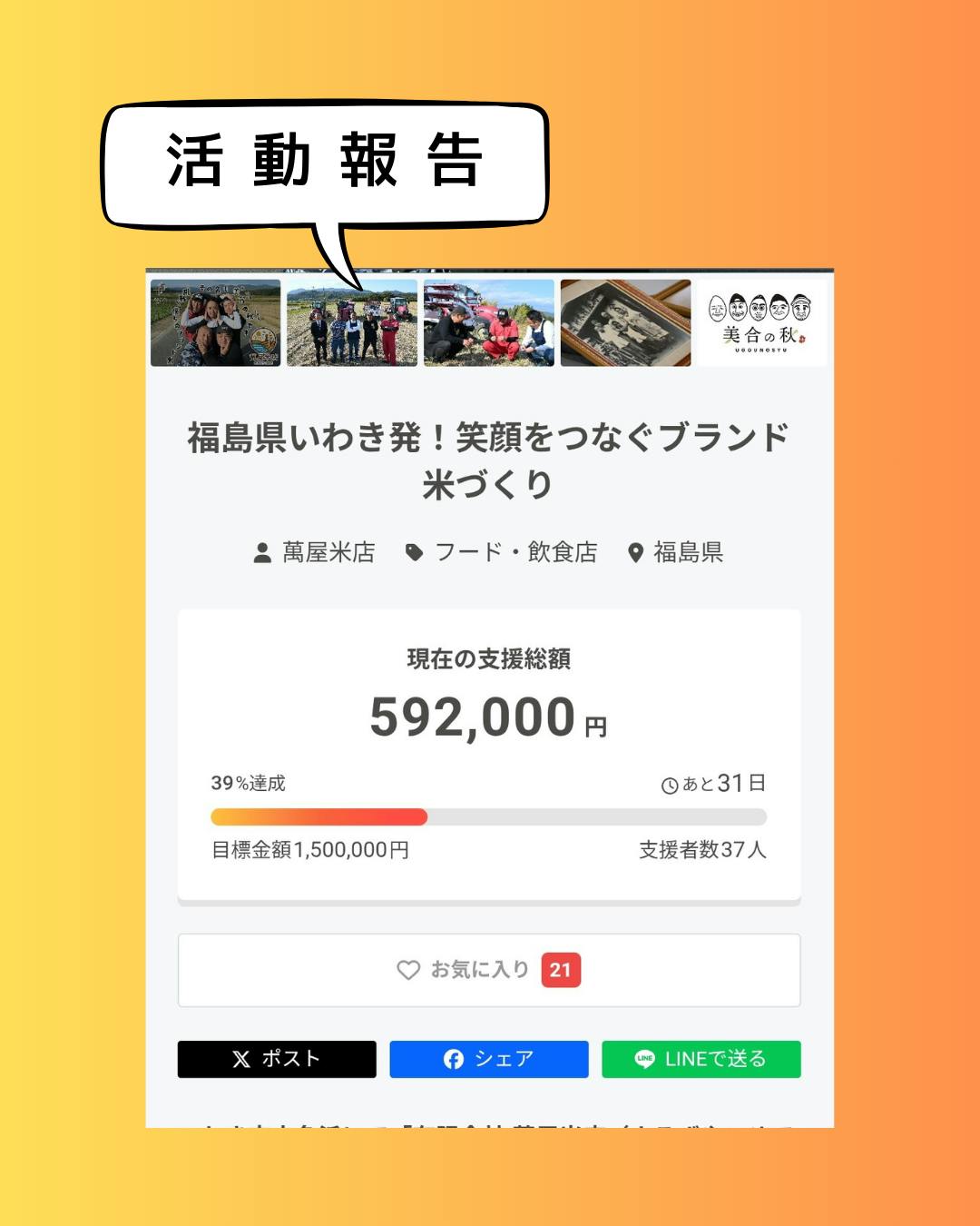 このプロジェクトをご覧いただきまして、ありがとうございます。いわき市小名浜にて「有限会社 萬屋米店(よろずやこめてん)」を営んでいる佐藤将人です。