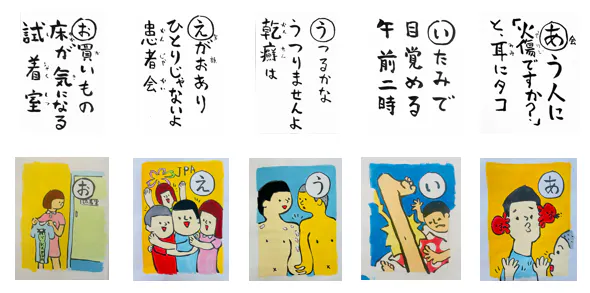 乾癬患者の方はもちろん、初めて乾癬という病名を聞いた方でも、ユニークな川柳とシュールなイラストの組み合わせにより、クスッと笑っていただけるカルタになっています。