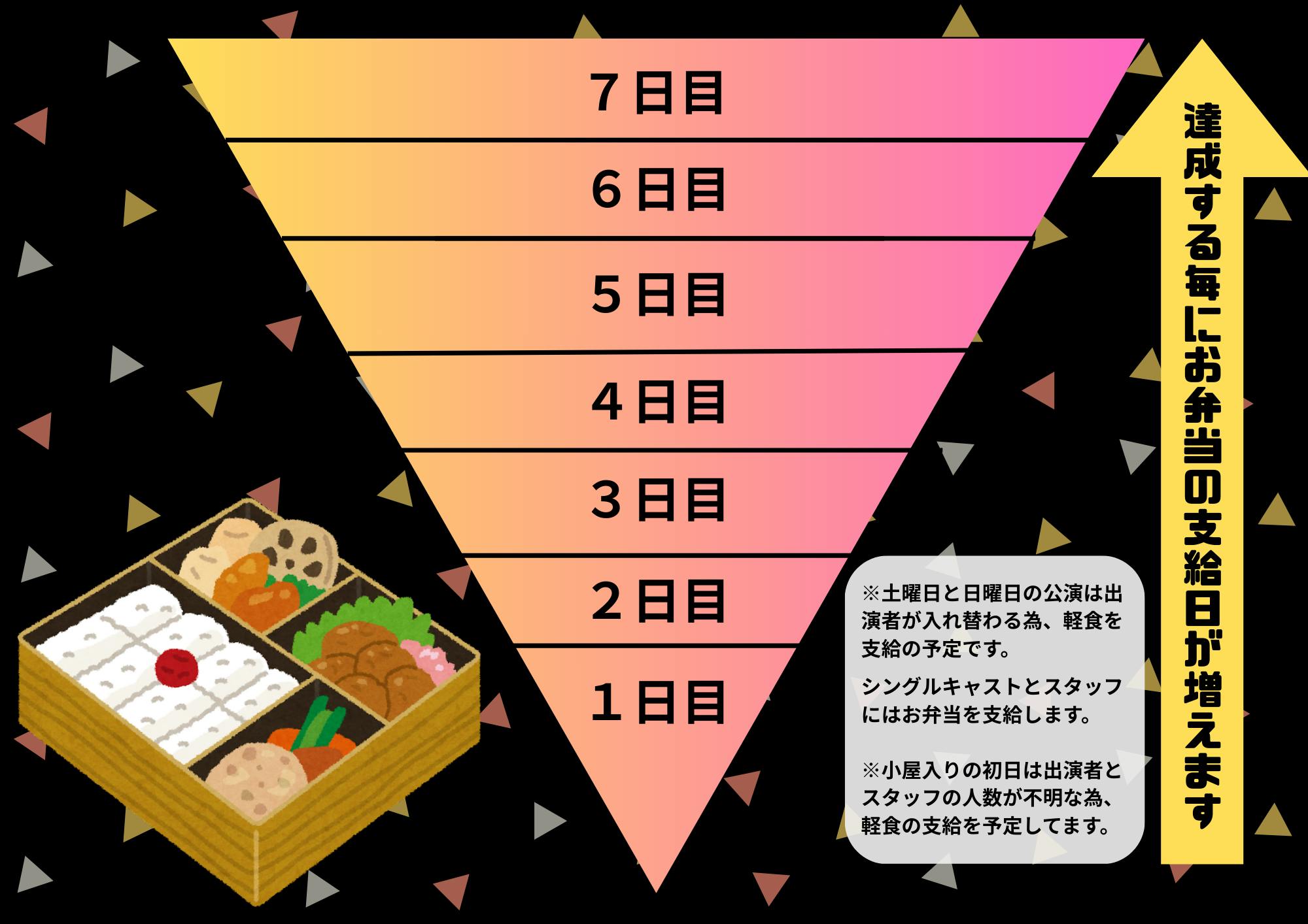 キャストとスタッフへ本番期間中に「お弁当を支給する」こと!