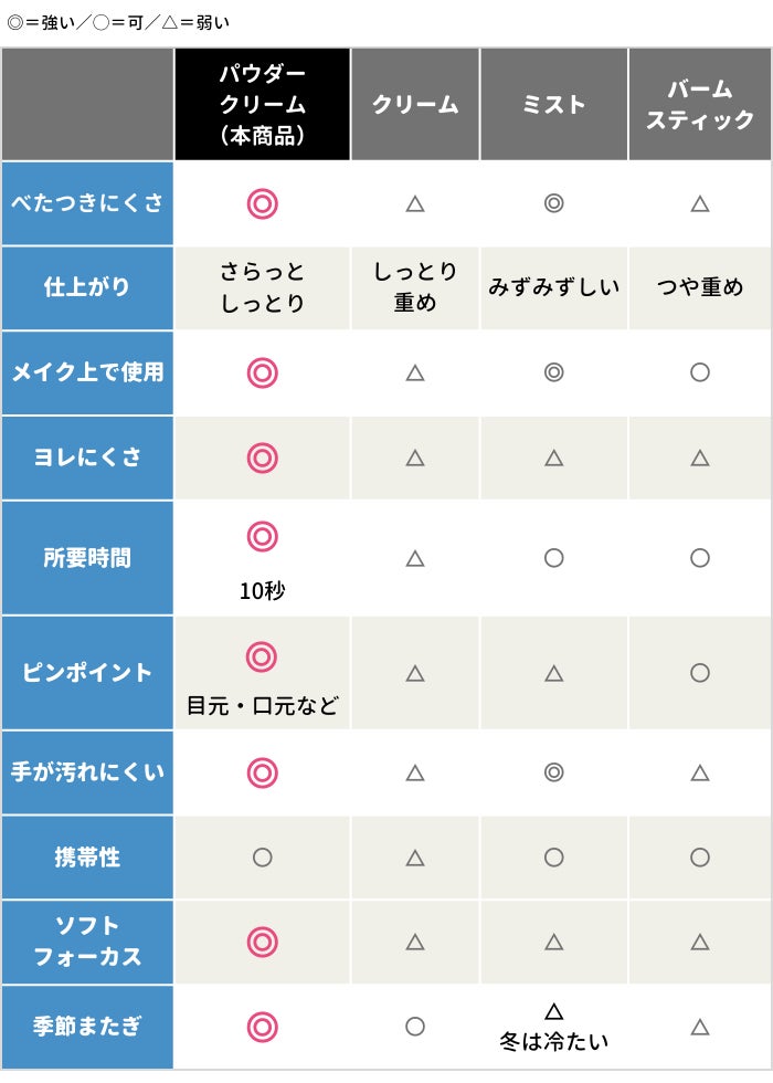 パウダークリームの特徴まとめ|比較表