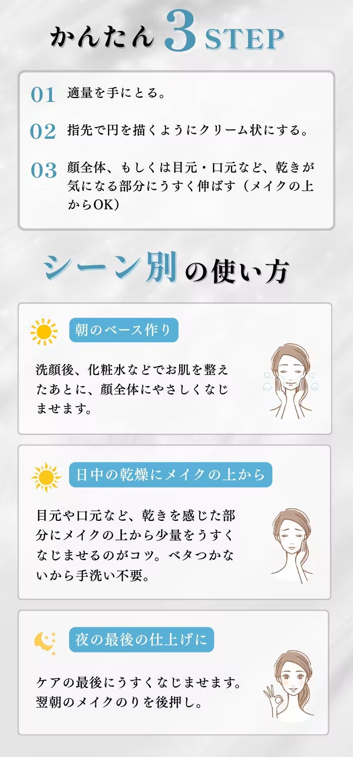 使い方は3STEP!10秒で毎日の乾きをケア