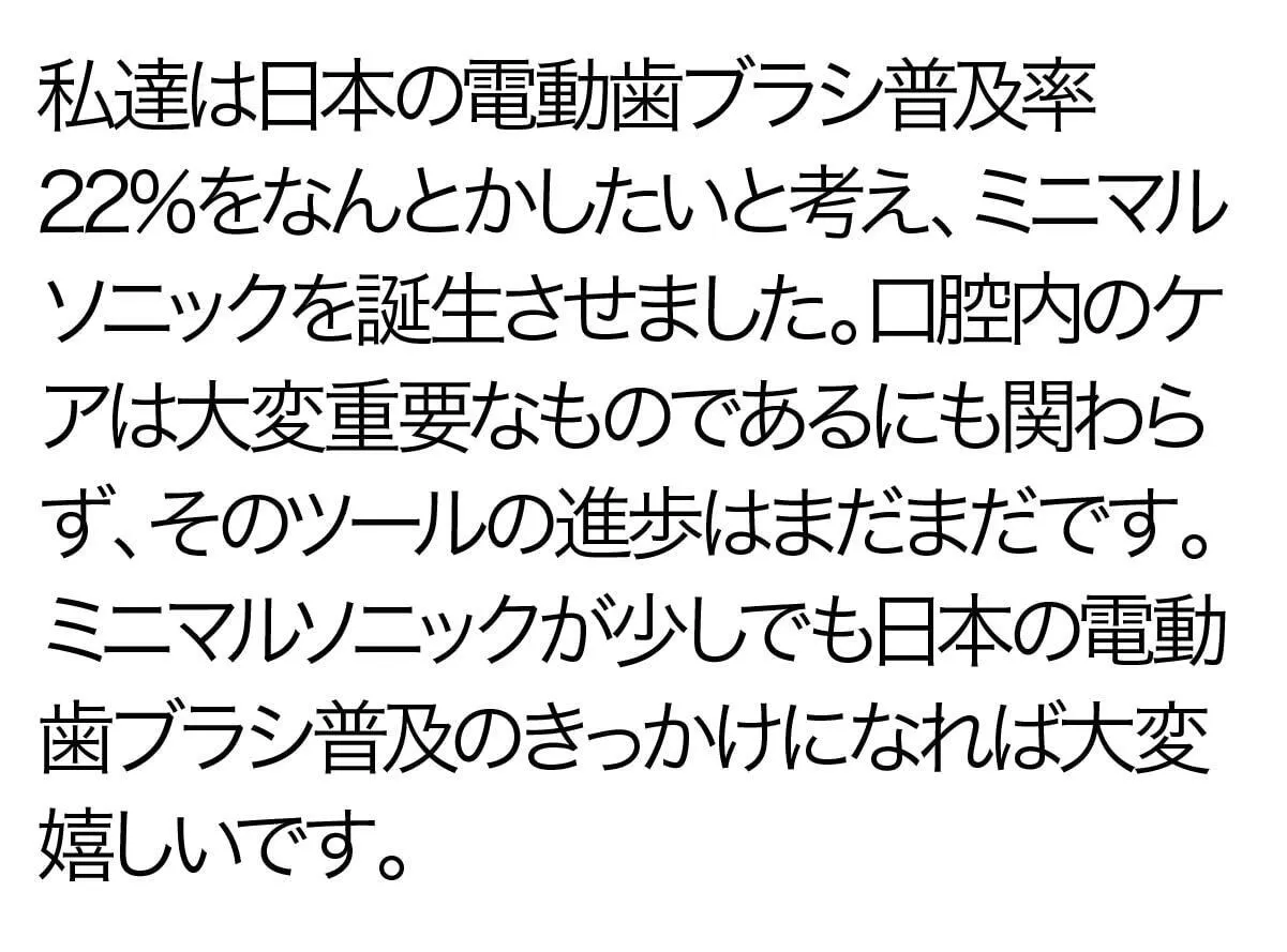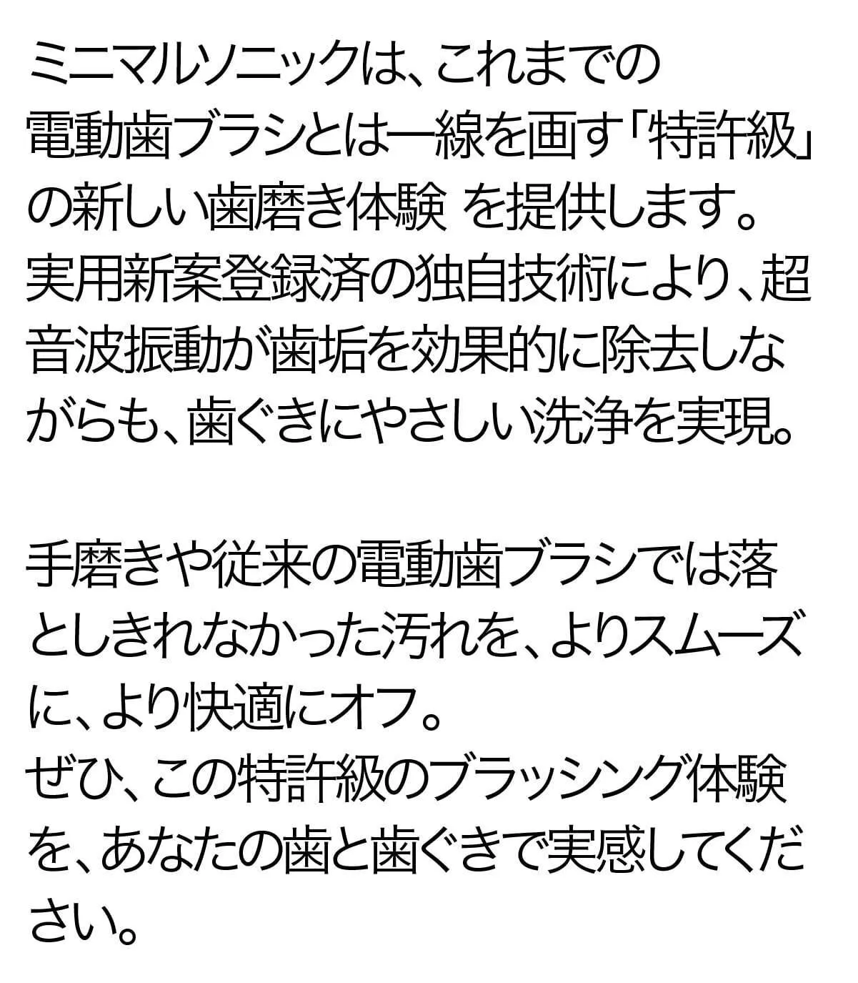 2026/01/17 20:00日頃より、多くのご支援ありがとうございます。「替えブラシ」のリターンを販売しておりますので、ご案内させて頂きます。■こちらで開催中■https://camp-fire.jp/projects/910366/view(※ミニマルソニック2本目のご購入もオススメです。)この機会に是非、ご利用下さいませ。引き続き、ミニマルソニックをどうぞよろしくお願い申し上げます。ミニマルトゥースラボスタッフ一同 もっと見る【発送完了致しました】ソニックガジェット(新体験)ミニマルソニック