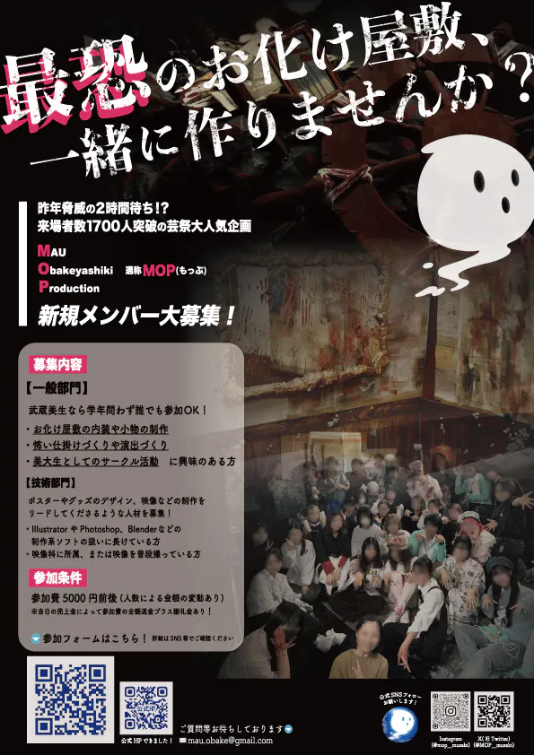 皆さまからのご支援ひとつひとつが、MOPのお化け屋敷をさらにクオリティの高いものへと押し上げる大きな力となります。どうか私たちの挑戦を、一緒に形にしていただけませんか?