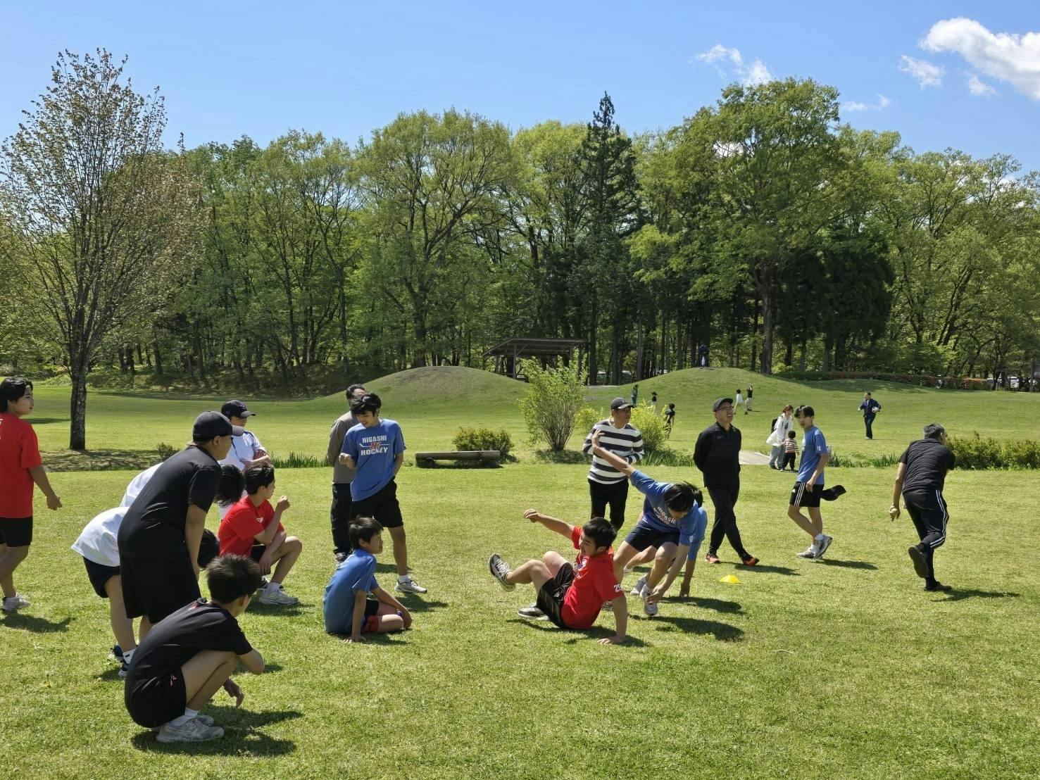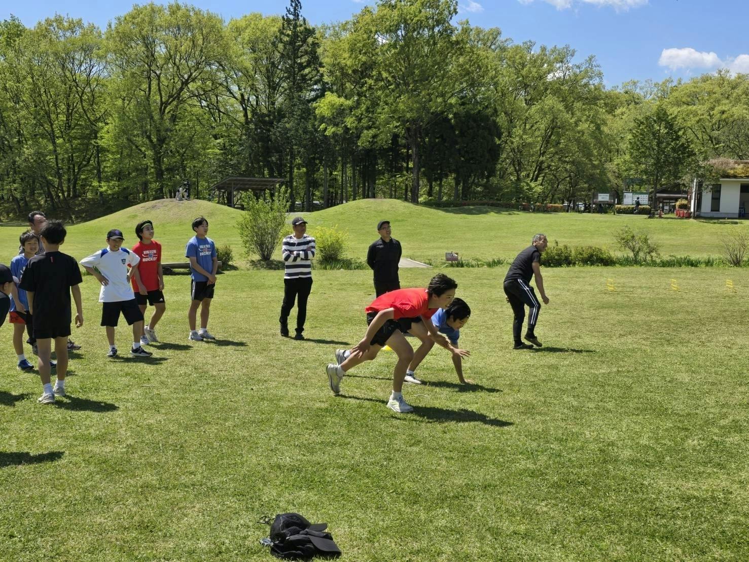 近くの園地、坂道、大谷川公園で持久力や瞬発力強化に頑張ります!保護者も一緒に熱くトレーニングに参加⁉︎
