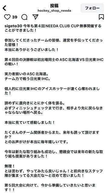 新一年生が公式戦で初ゴールを決めてくれました‼︎ 「NEEDA CLUB CUP」初めて参加させて頂いた大会で準優勝という結果を残すことができました。選手たちの地道な練習はもちろんのこと日頃から支えてくださったコーチ陣、保護者の皆様、学校や地域の皆様、本当にありがとうございました。これからも一層努力していきます!そして、大会運営の方から心温まる感想をいただきました。ありがとうございました。