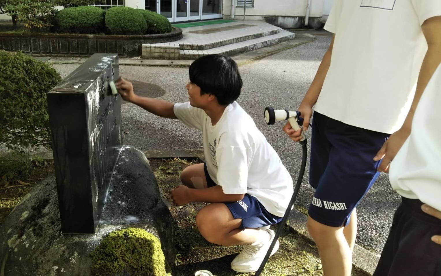まずは先輩方の素晴らしい結果が刻まれてる記念碑を磨いて気持ちを引き締めていきます‼︎