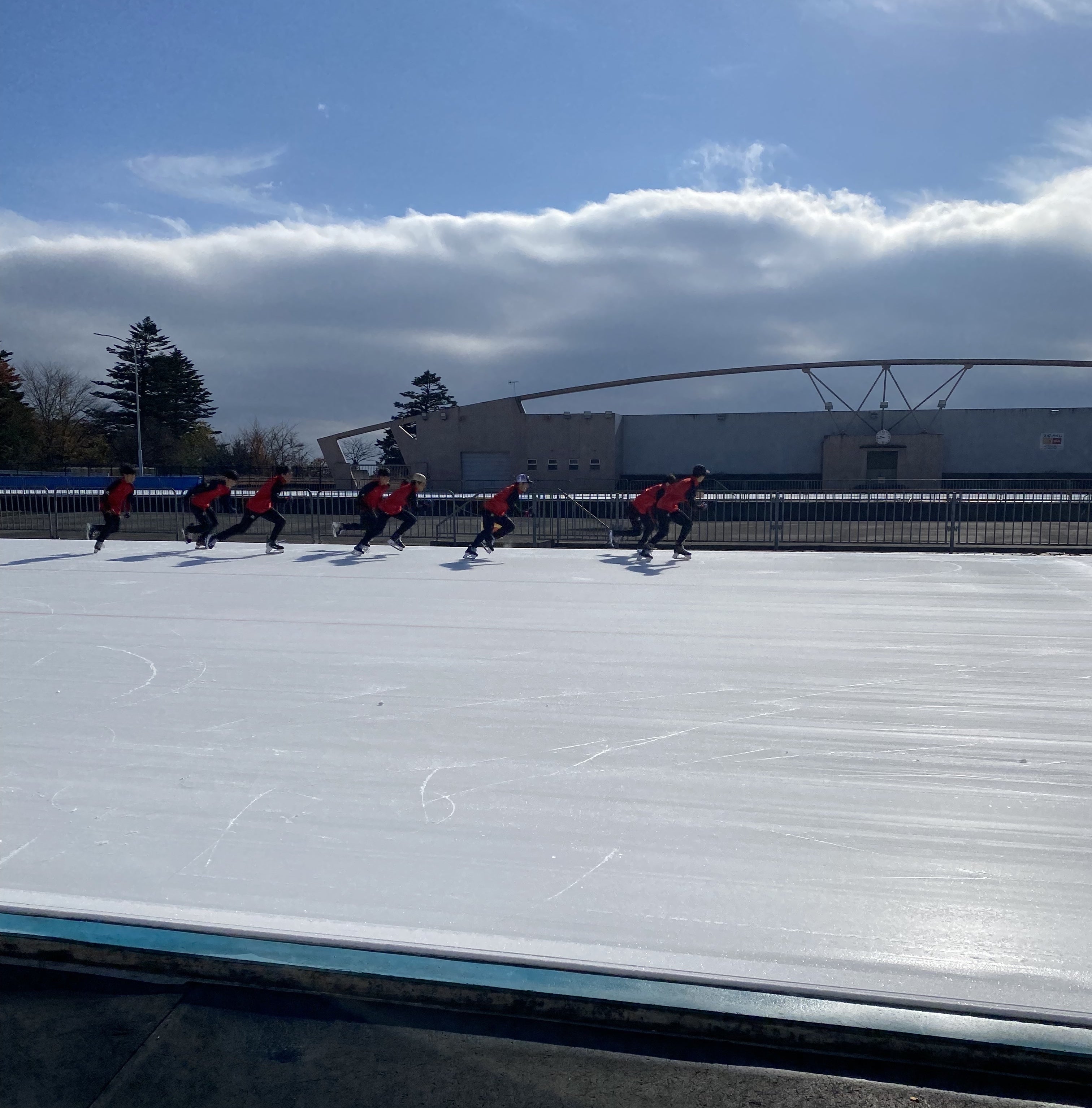 本日、日光霧降屋外スピードリンクがOPENしました。とってもいいお天気で、日光東中アイスホッケークラブ伝統の霧降外リンク100周を行いました。
