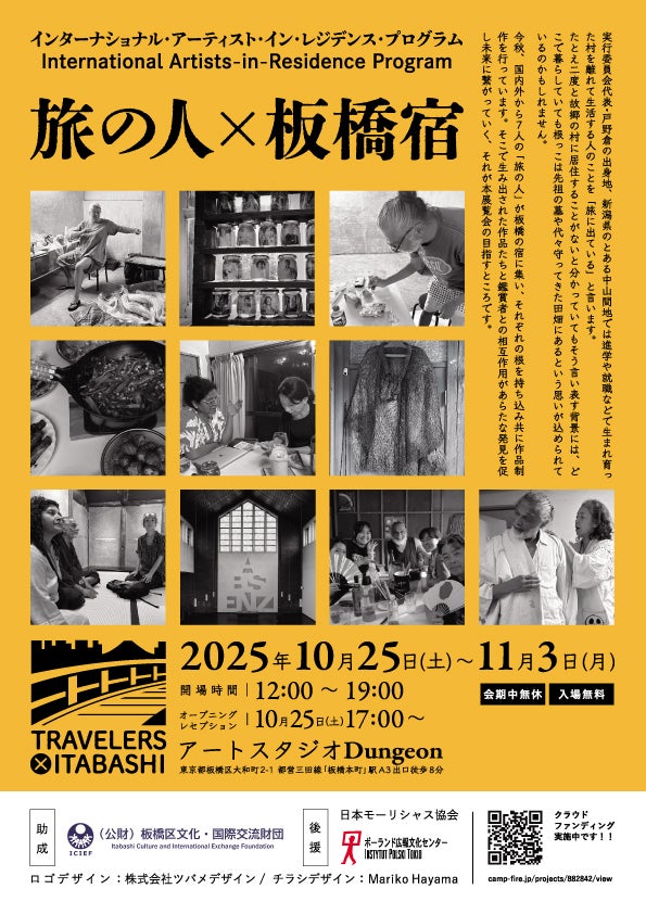 “旅の人×板橋宿” 展覧会を開催します!日時 : 2025年10月25日(土)~11月3日(月)開場時間 : 12:00~19:00オープニングレセプション : 17:00~会場 : 板橋区大和町2-1アートスタジオDungeon 都営三田線「板橋本町駅」A3出口徒歩8分詳細は下記Webサイトまでtravelersitabashi.wixsite.com/travelers-itabashi皆様のお越しをお待ちしております。