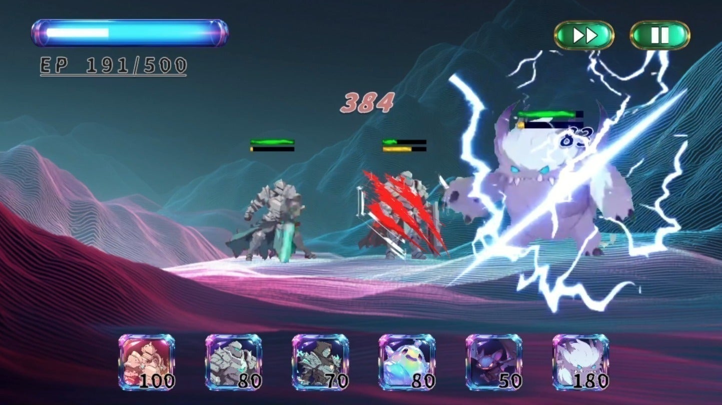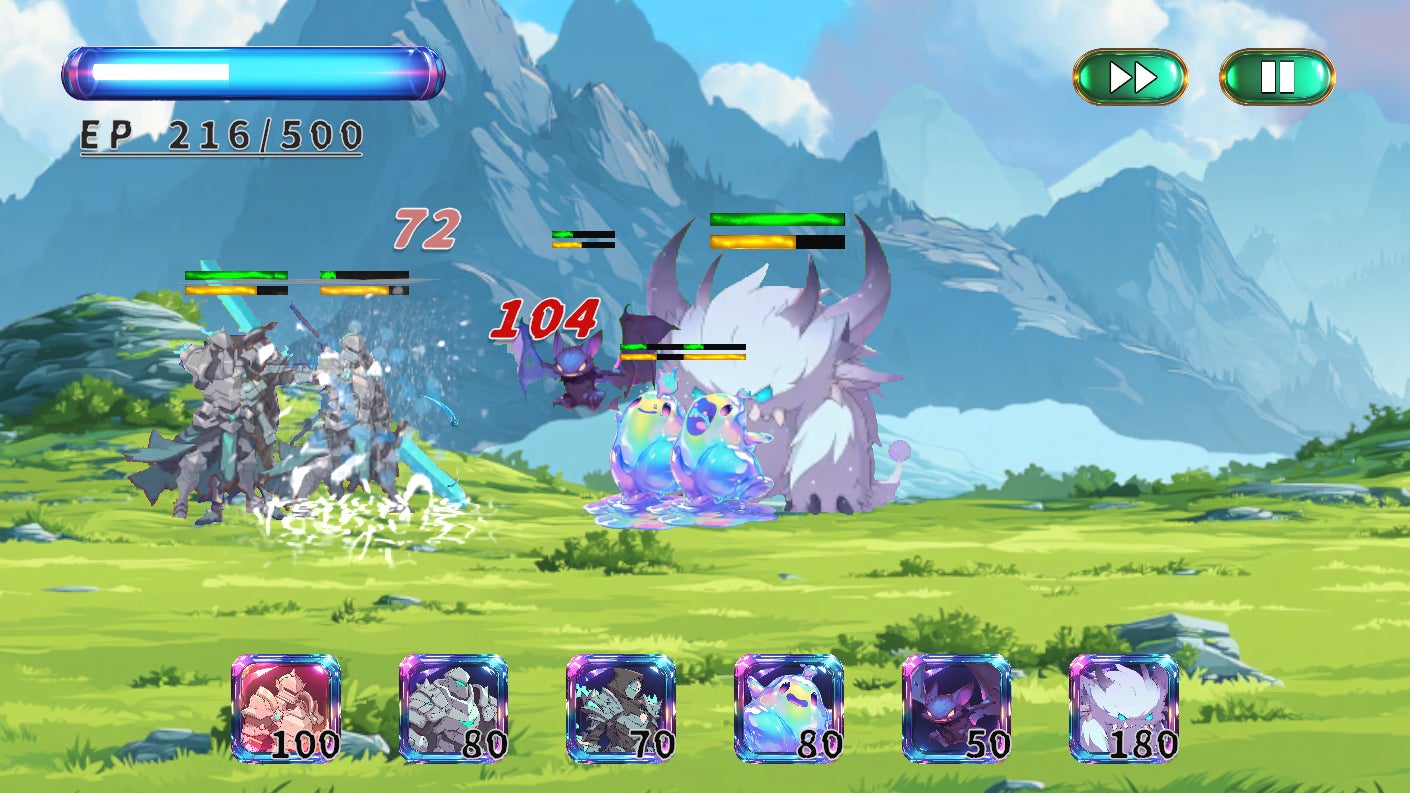 • 資源:時間で増えるエネルギー(コスト)を消費し、英雄を召喚することができる。上限と増加速度は育成によって拡張可能。バトル中に増減するパターンもあり。