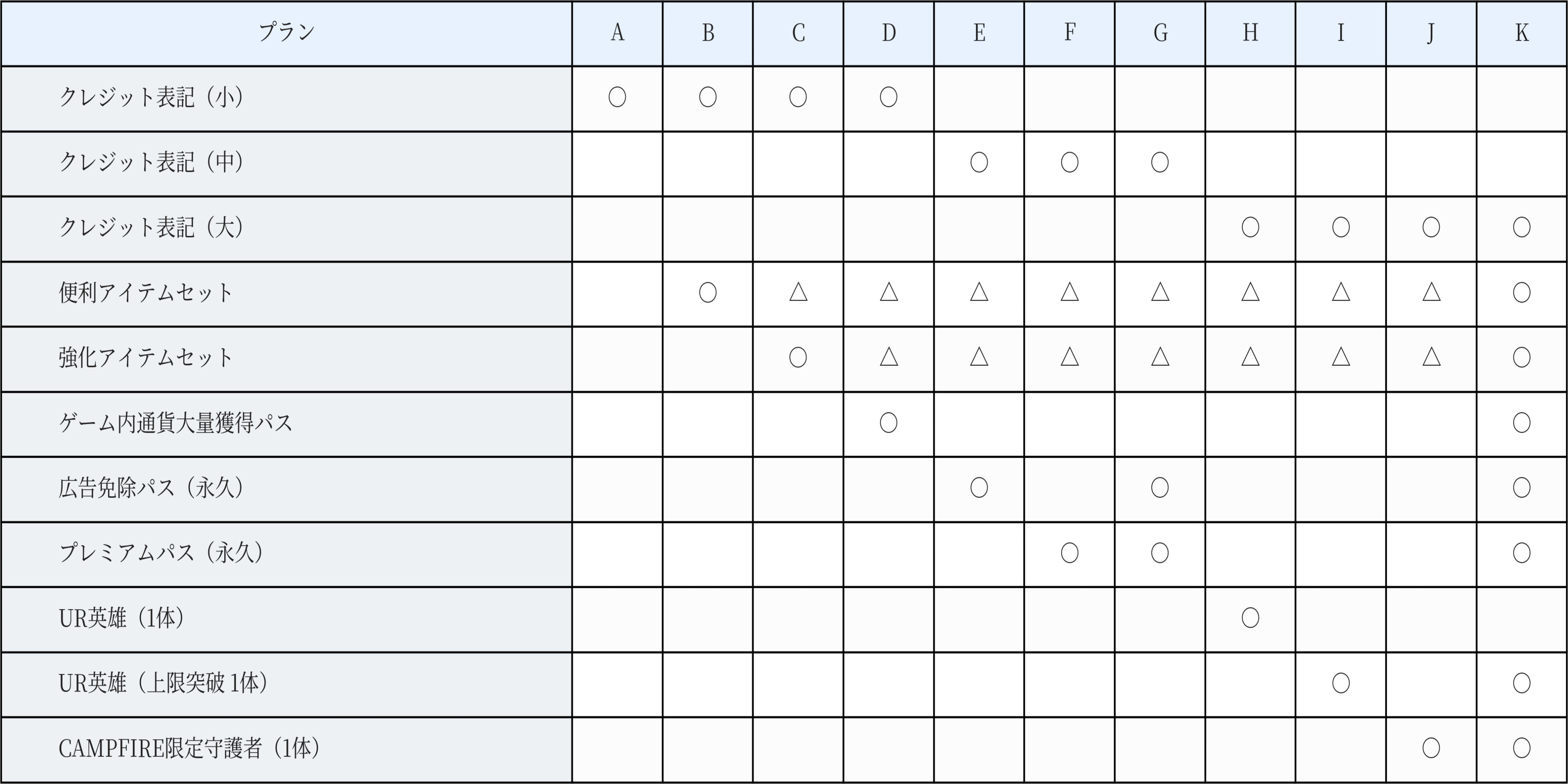 本プロジェクトのリターン内容を一覧化しました。